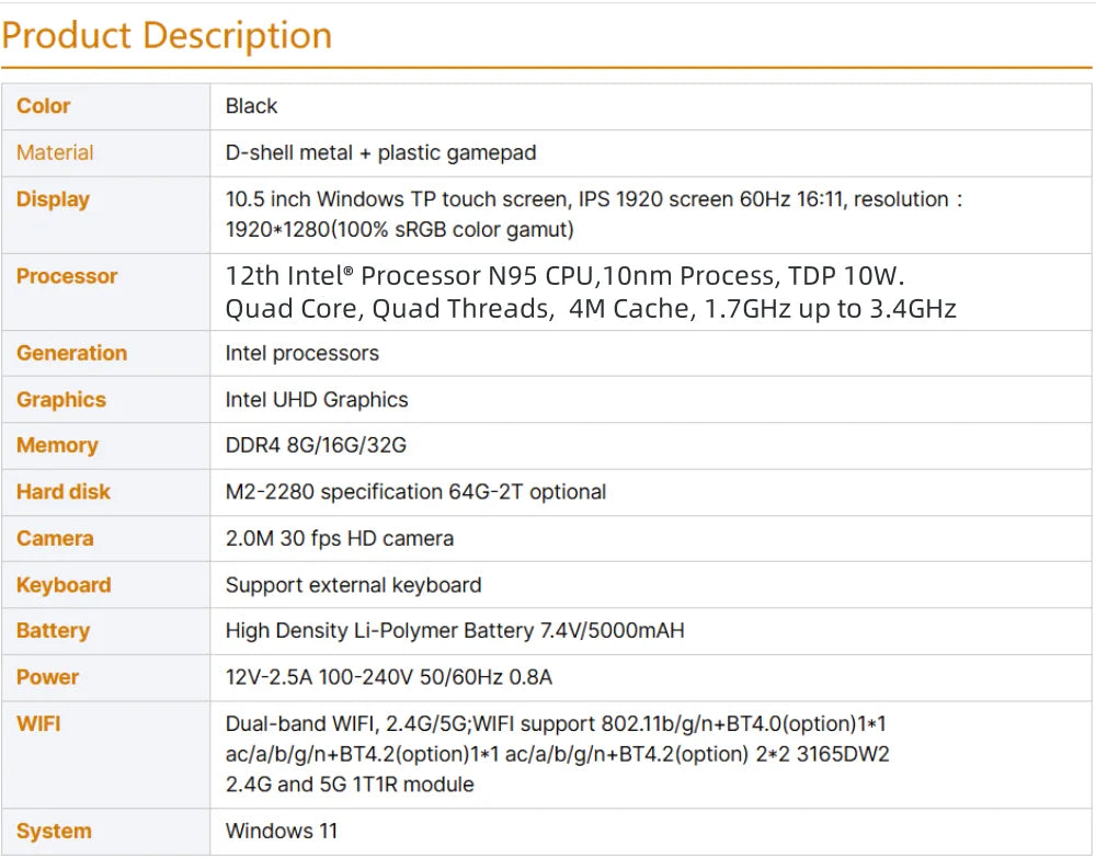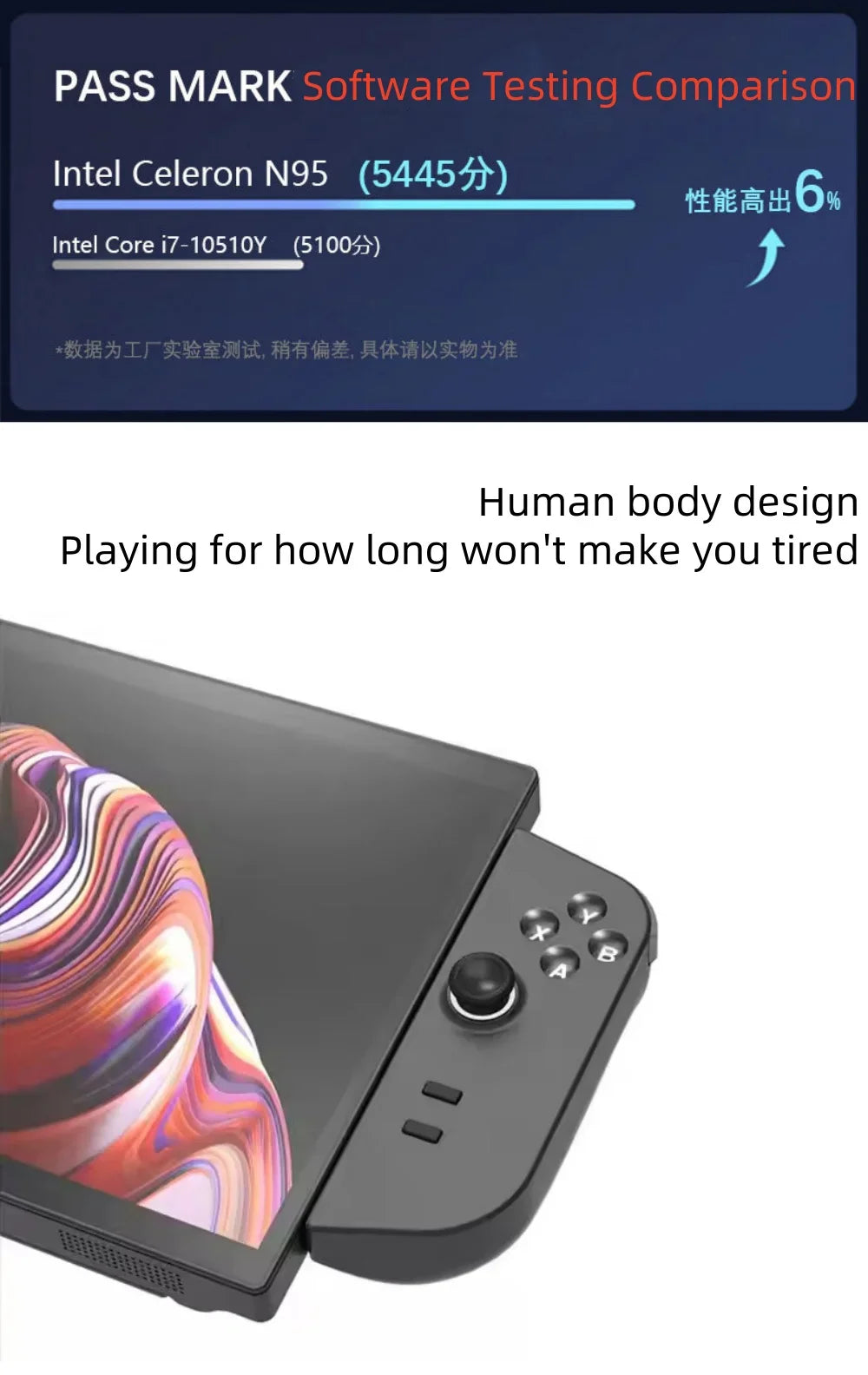 10.5" Handheld Gaming PC Intel N95 16GB RAM 512GB/1TB SSD Gaming PC Portable Mini Laptop with Detachable Gamepad Touch Screen PC