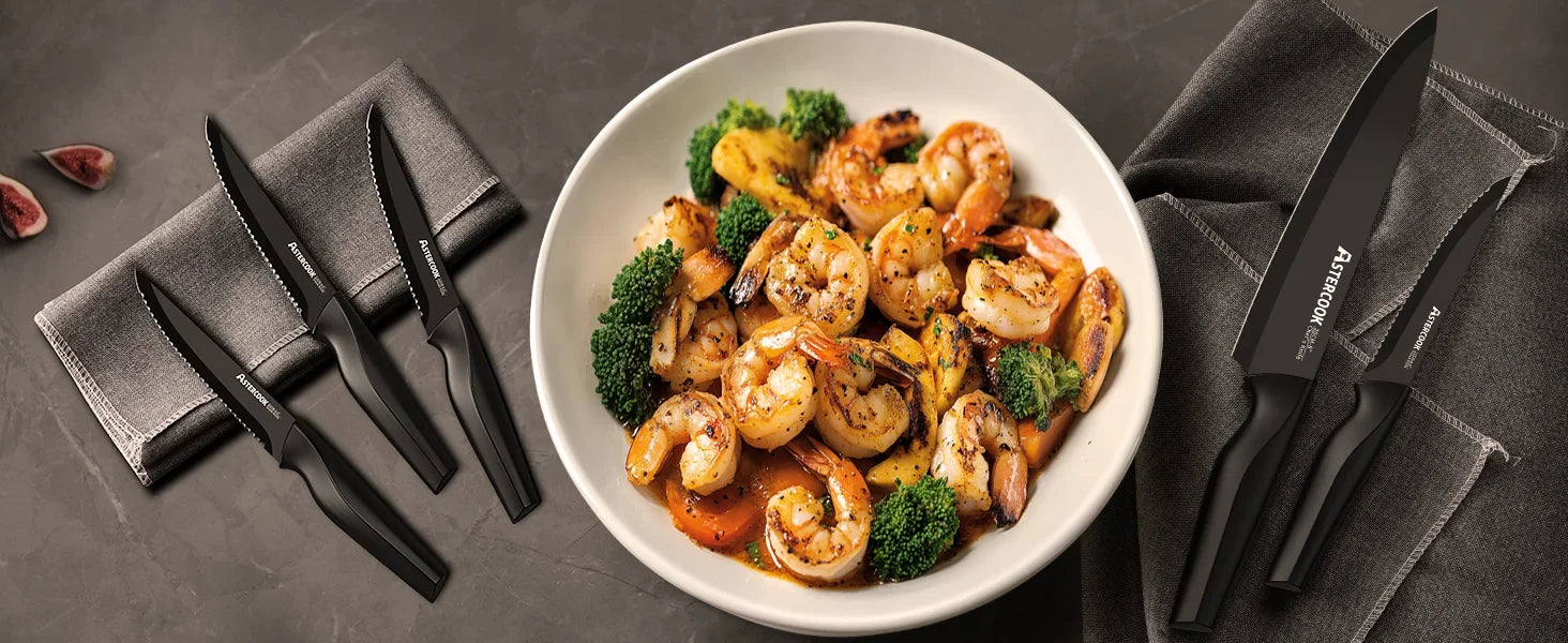 ⭐️⭐️⭐️⭐️⭐️ “Beautiful set and super sharp. Makes cooking faster.” — James R.