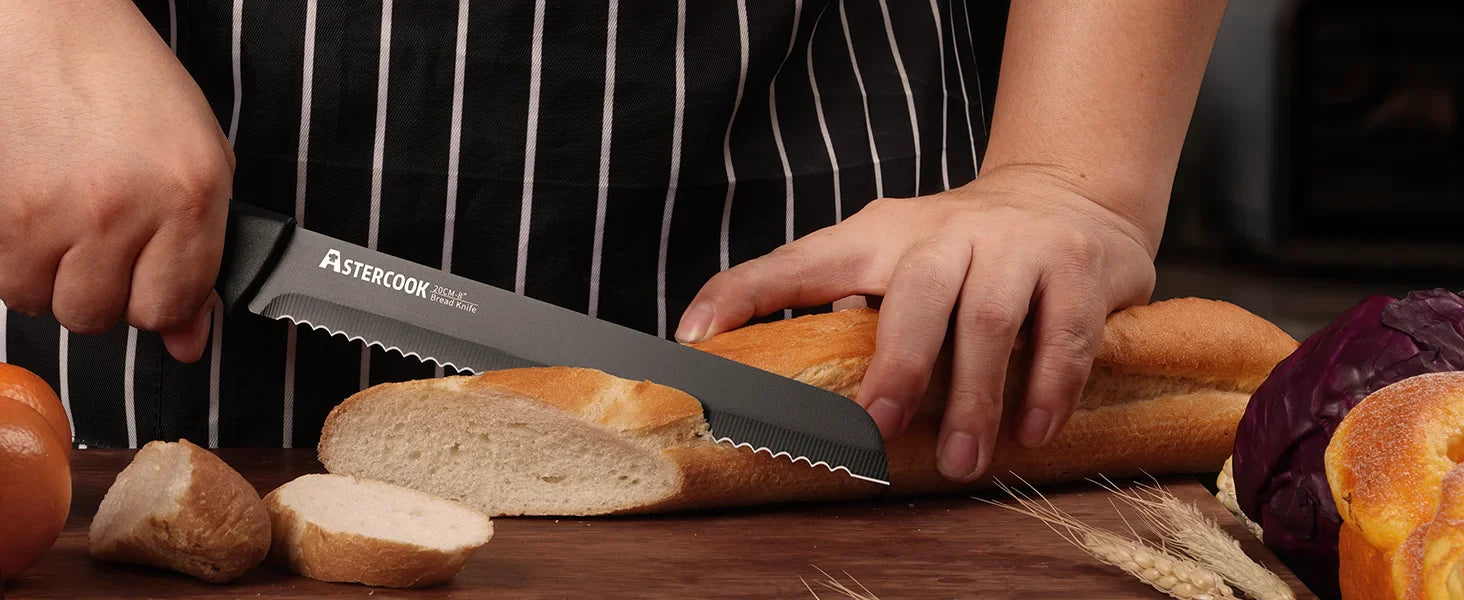 Astercook 15-Piece German Stainless Steel Knife Set with Block & Built-In Sharpener
