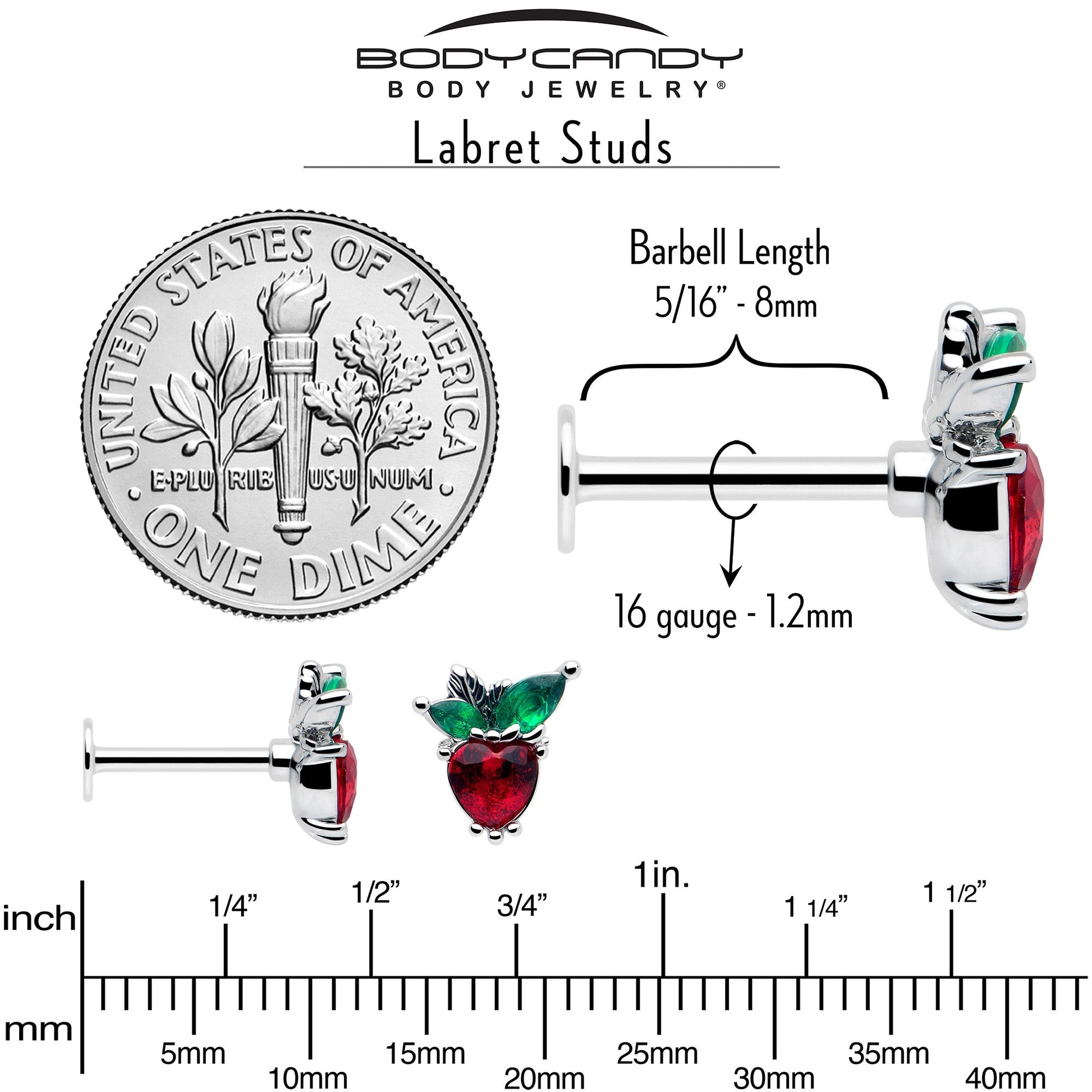 16 Gauge 5/16 Red Green Gem Strawberry Heart Labret Monroe Tragus