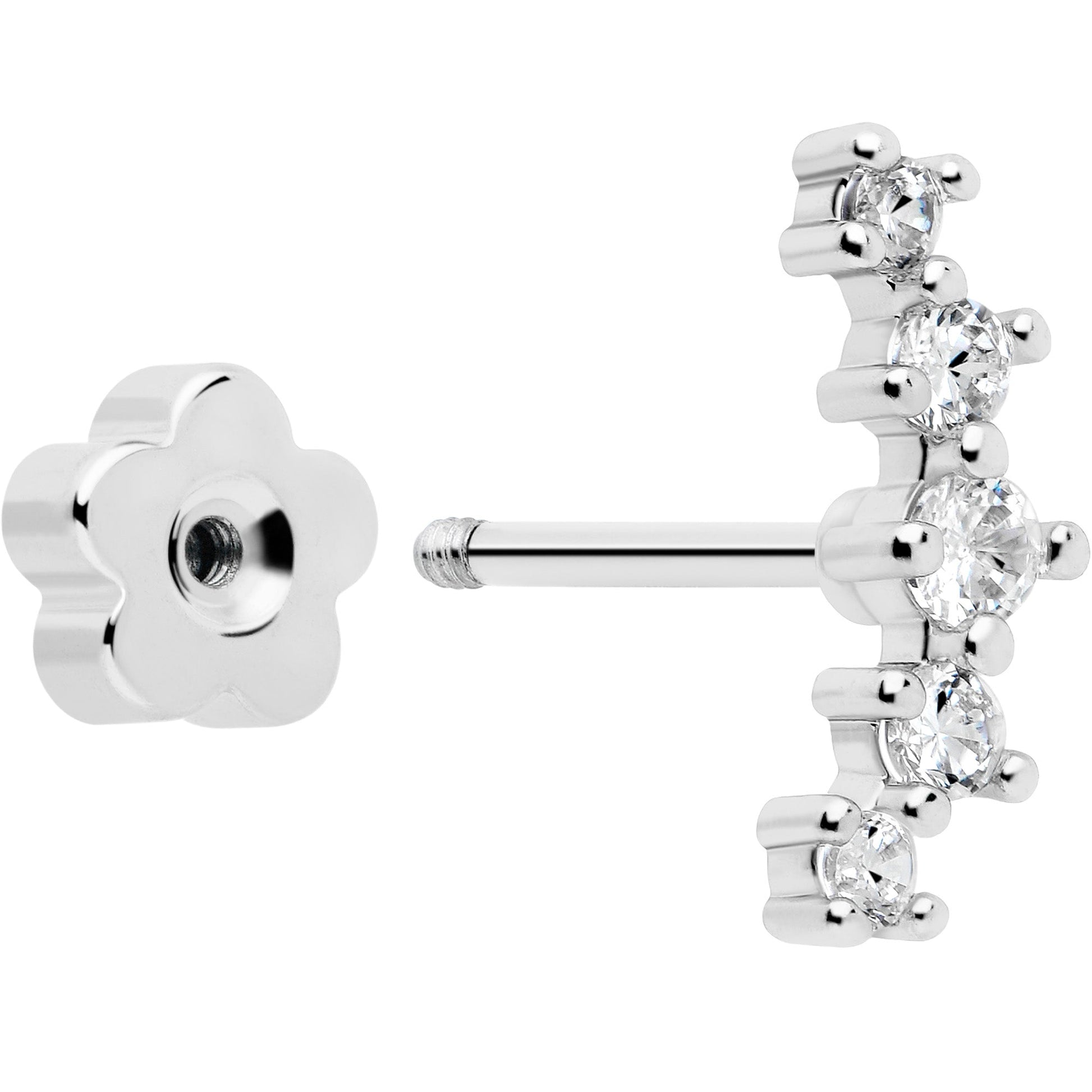 The back end features a flower shape, for a charming change from the standard disc shape and it's even reversible so you wear it however you choose. You can even rock this jewelry in multiple piercings including lip, monroe, tragus, helix, and some conch piercings. With such an endearing style and such thoughtful details, these are earrings you'll never want to remove. Sold as a set of six.
