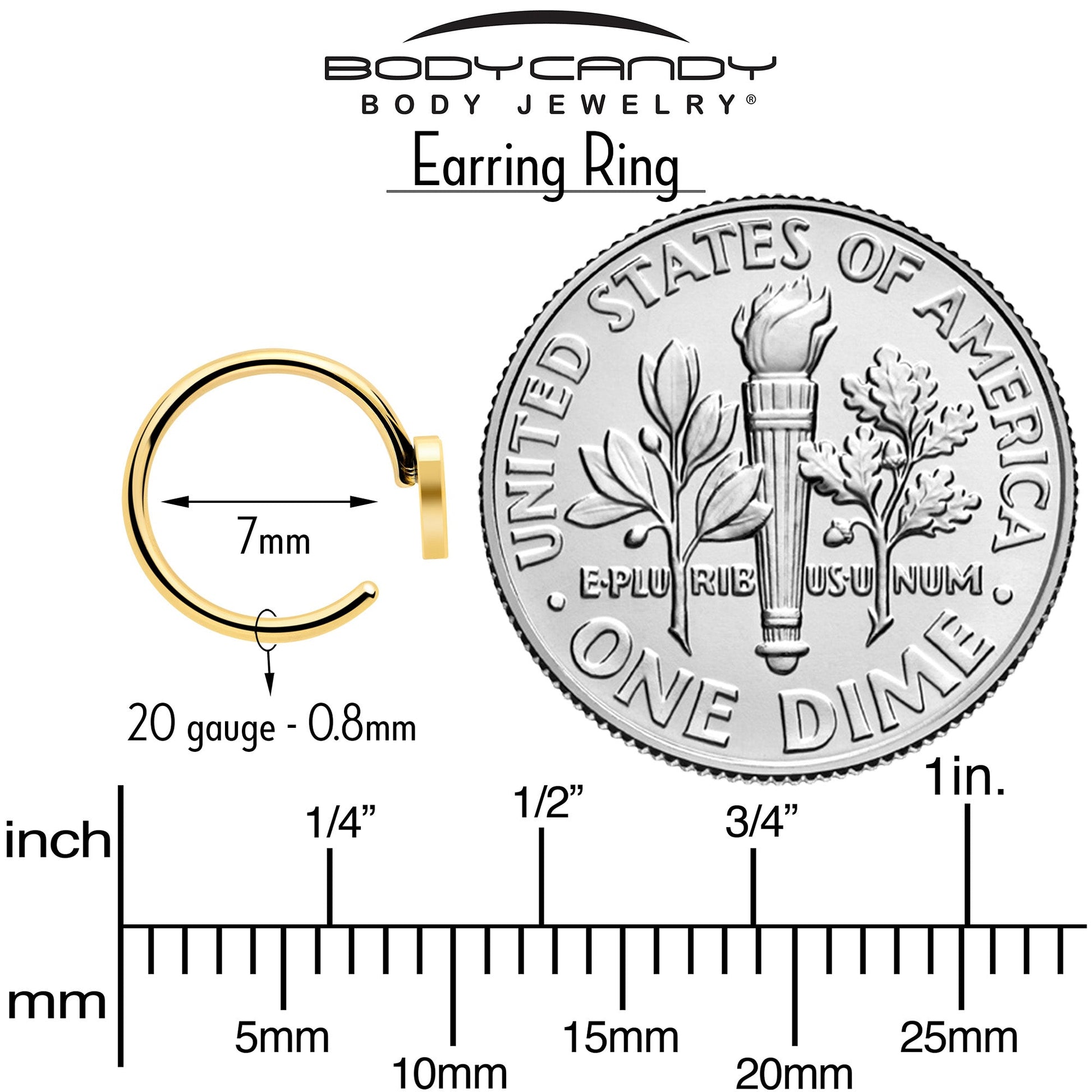 20 Gauge (.8mm), 0.27" (7mm) Inner Diameter, .35" (9mm) Outer Diameter, Gold Tone PVD over ASTM F-136 Implant Grade Titanium Circular Rings, Sold as a Pair