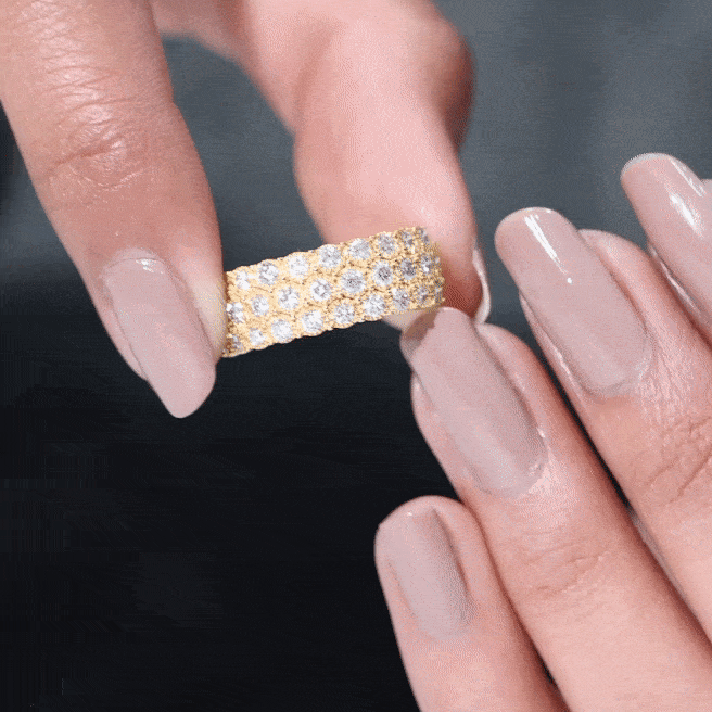 3 Row Lab Grown Diamond Wide Wedding Band with Certificate