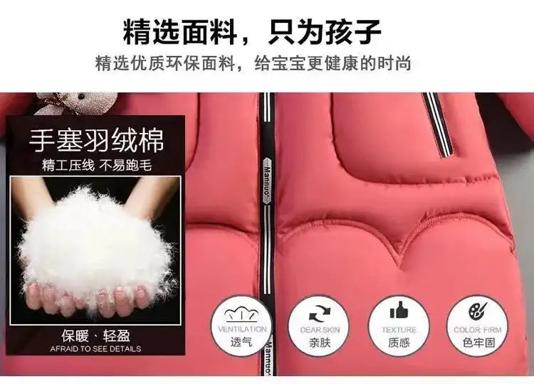 4 Color Big Size Winter Keep Warm Long Style Girls Jacket Teenage Thick Heavy Cold-proof Hooded Windbreaker Coat For Kids