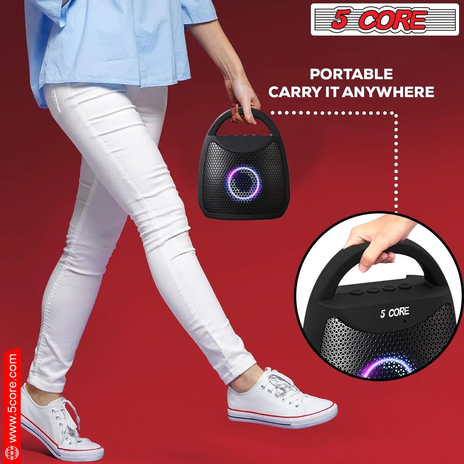 Experience superior sound quality with a 5 Core portable outdoor speaker featuring the latest Bluetooth technology for seamless wireless connectivity up to 10 meters. 1200mAh rechargeable battery, enjoy 3 to 4 hours of uninterrupted music. A powerful full range speaker that delivers clear highs and decent bass without distortion. Made from the roughest ABS materials and weighing just 290g, its mini size makes it easy to carry. The bocinas portátiles con Bluetooth are always ready to elevate your audio experience. Ideal for patio, pool party, beach, home, travel, and more. This outdoor speaker Bluetooth waterproof is small yet powerful, a cool gift for teenagers, college dorm rooms, party lovers, and unisex gifts for adults. |