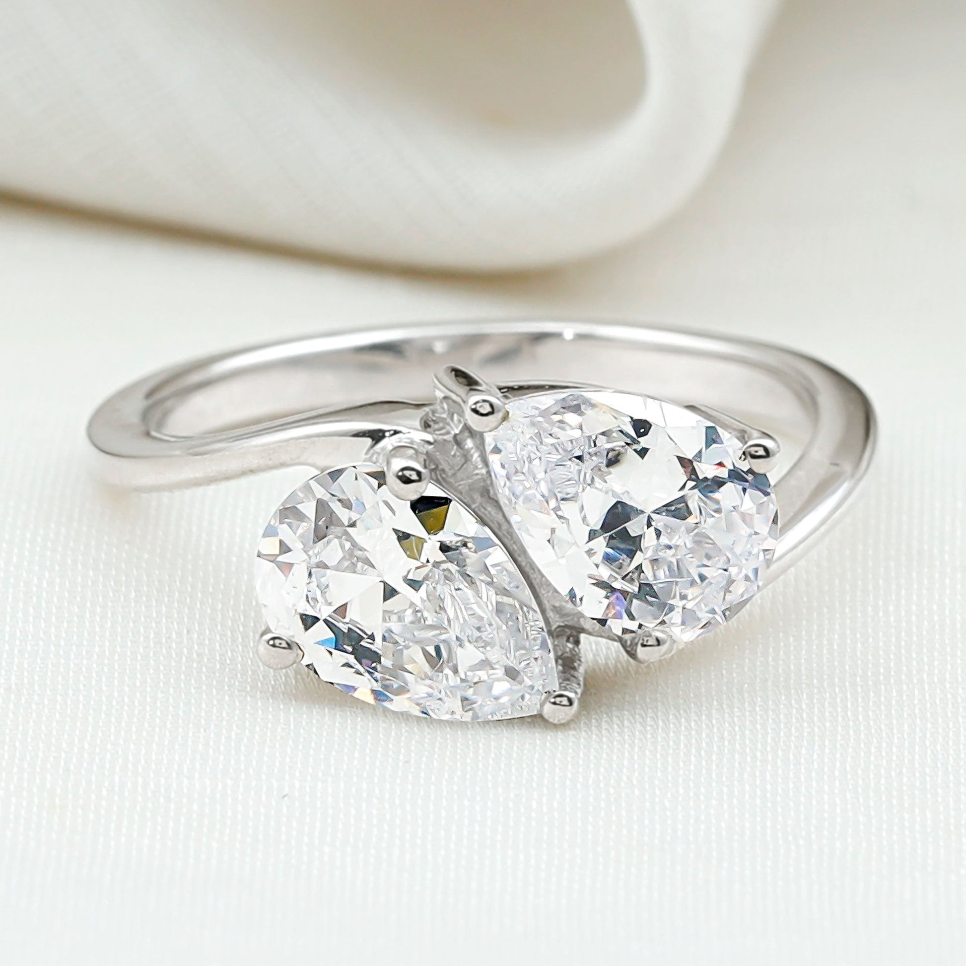 6X8 MM Pear Shaped Lab Grown Diamond Two Stone Engagement Ring