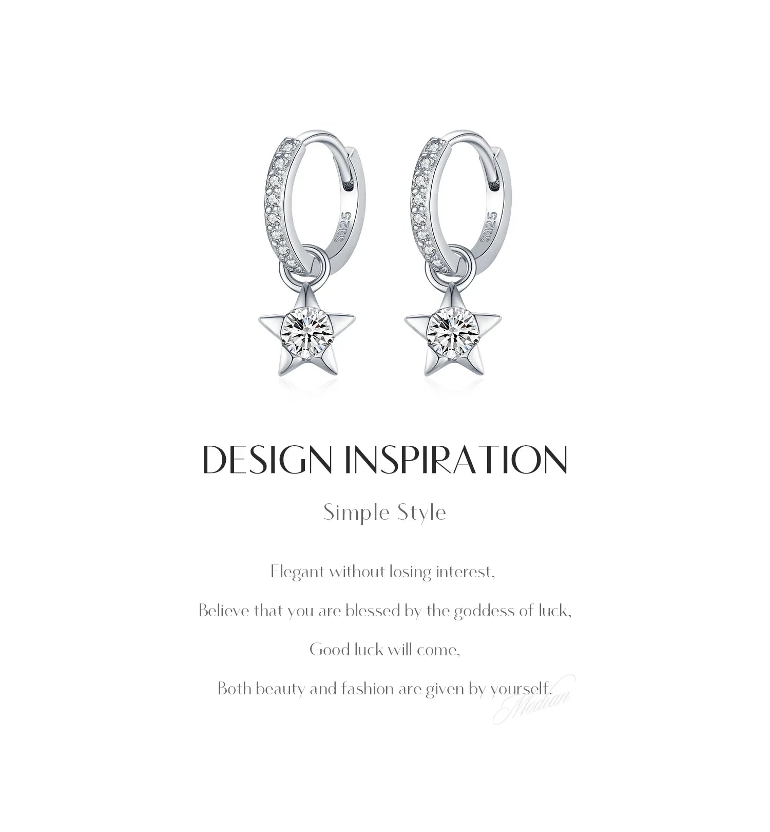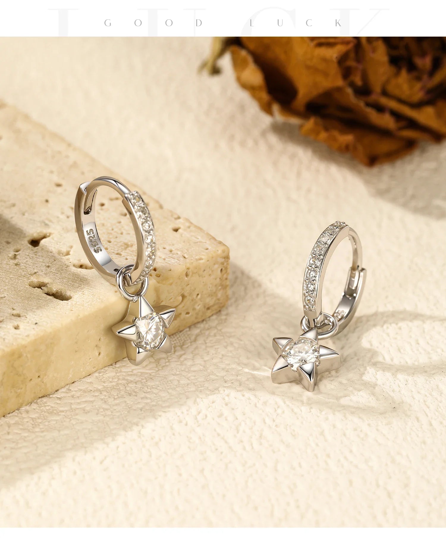 925 Sterling Silver Moissanite Star Hoop Earrings D Color Shiny For Women