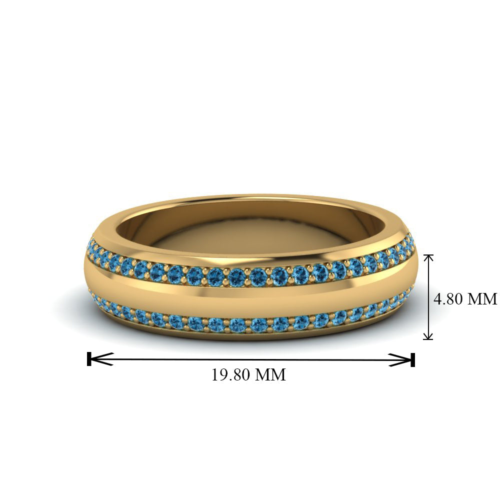 • Accent Stone Types: Accent stone options for the Round Pave Comfort Fit Mens Band are White Diamonds, Blue Sapphire, Pink Sapphire, Orange Sapphire, Green Emerald, Red Ruby, Ice Blue Topaz, Purple Amethyst & Black Diamond.