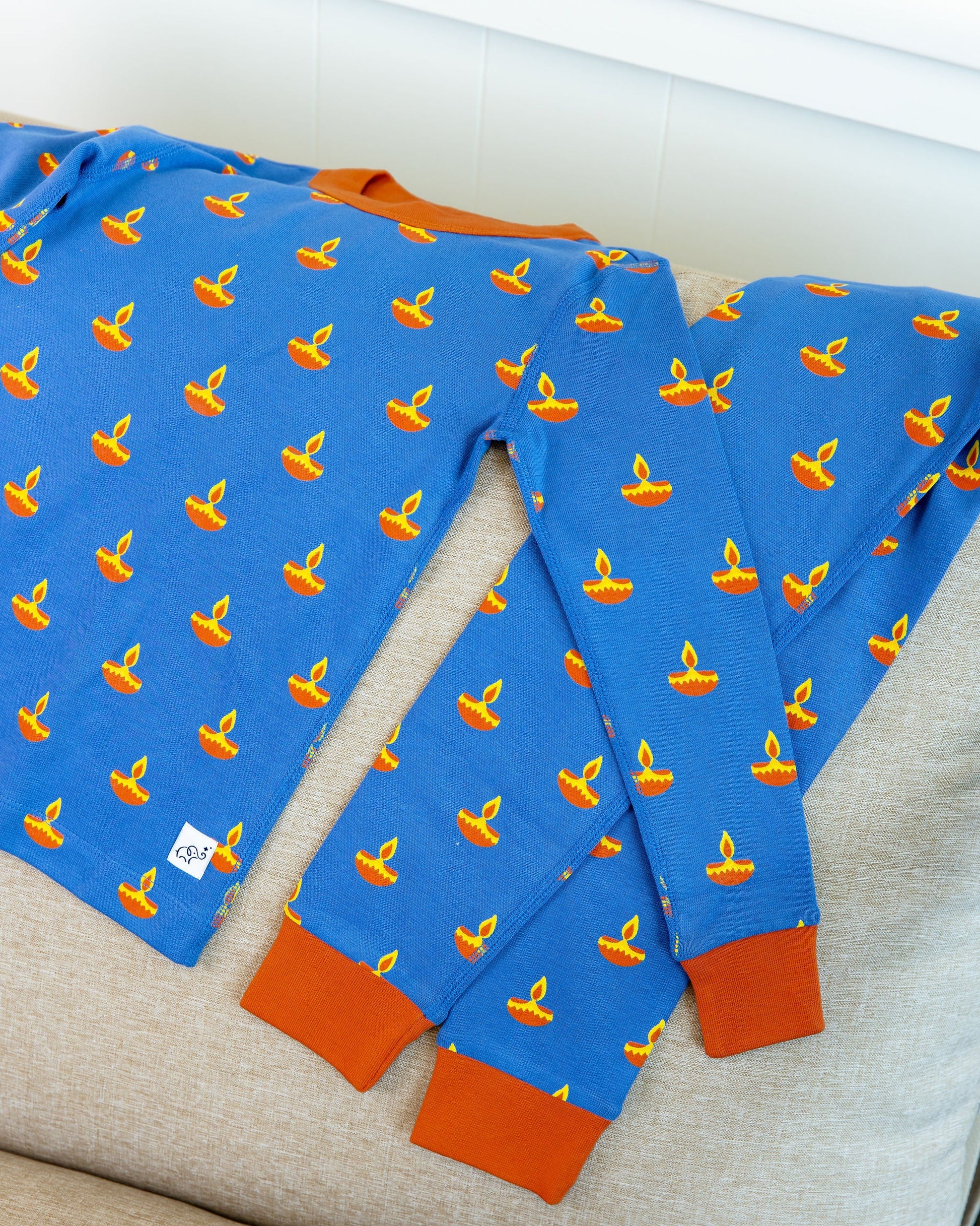 A bedtime essential that glows with cultural pride. Our Blue Diya print—symbolizing light, warmth, and family celebration—makes this pajama set a standout favorite. Crafted with soft organic cotton and gentle stretch, it’s designed for your growing child to play, rest, and connect with their roots in cozy style.