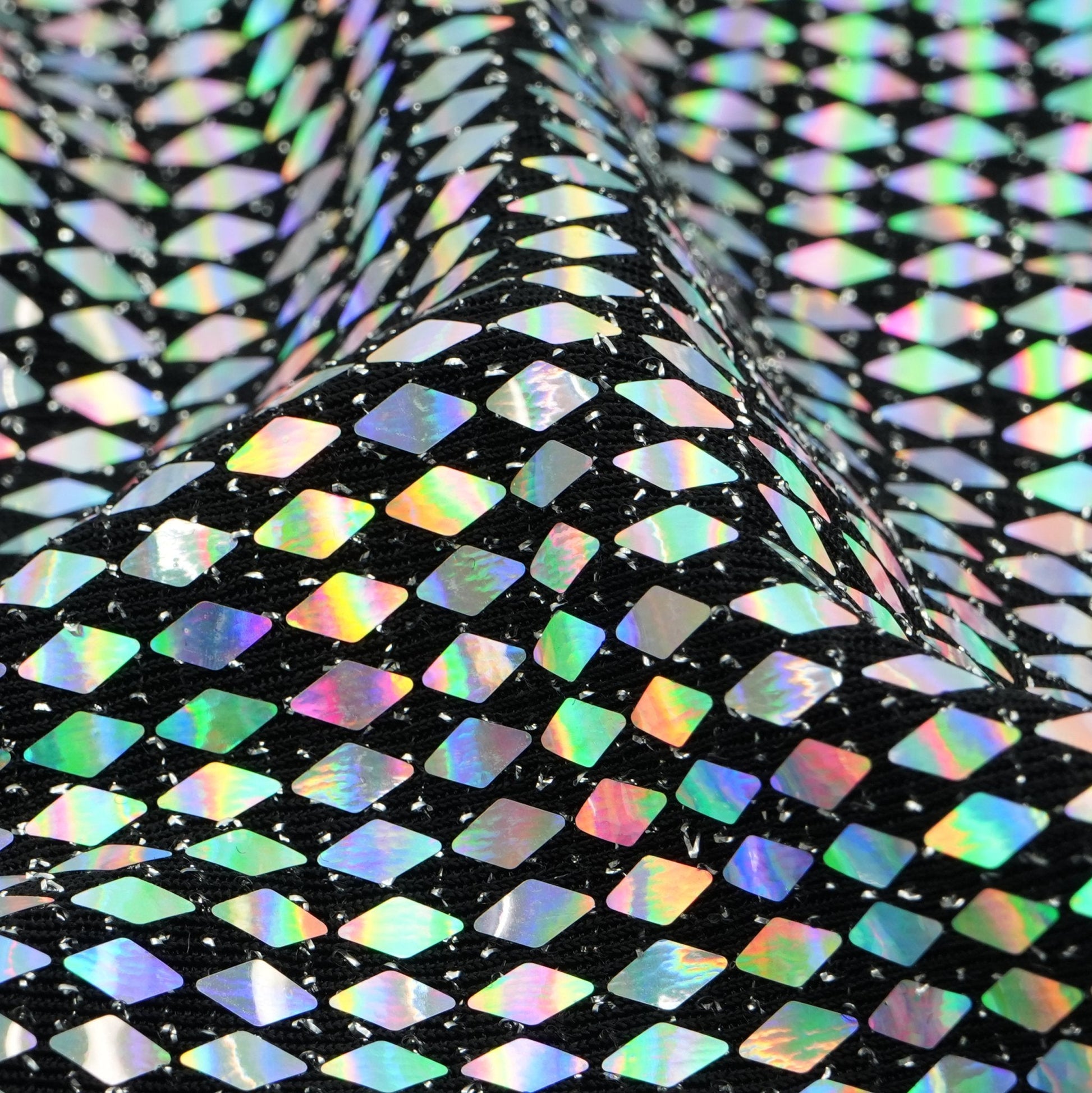 Bling Nylon Spandex Lurex Fabric is a collection of vibrant stretch fabrics with dazzling metallic Lurex fibers woven into the face and a nylon spandex with holographic Diamond Transfer Sequin.