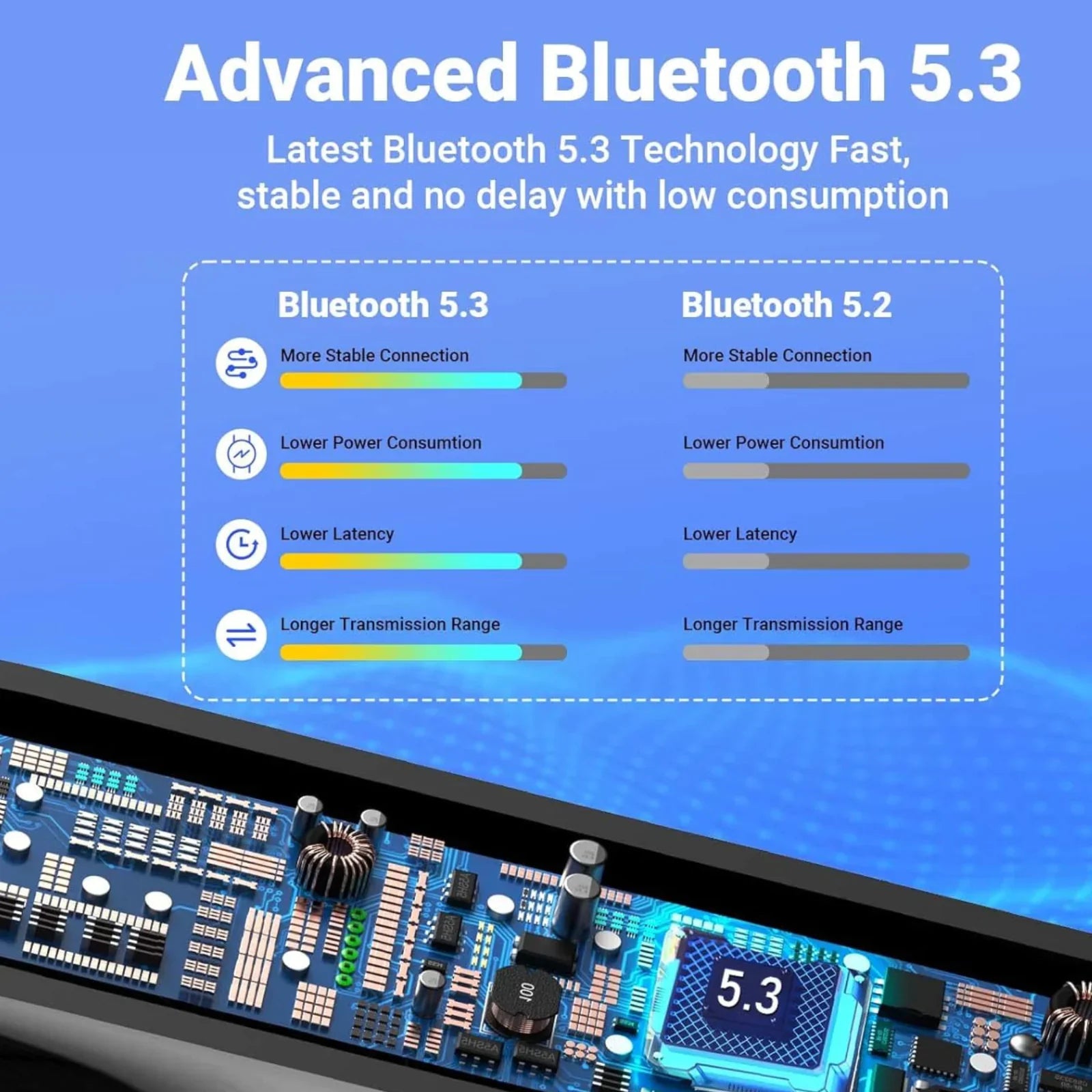 - Technology: Bluetooth 5.3 (Real)