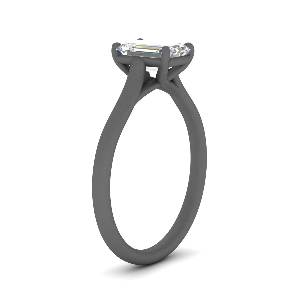 Cathedral Flat Band Emerald Cut Solitaire Engagement Ring