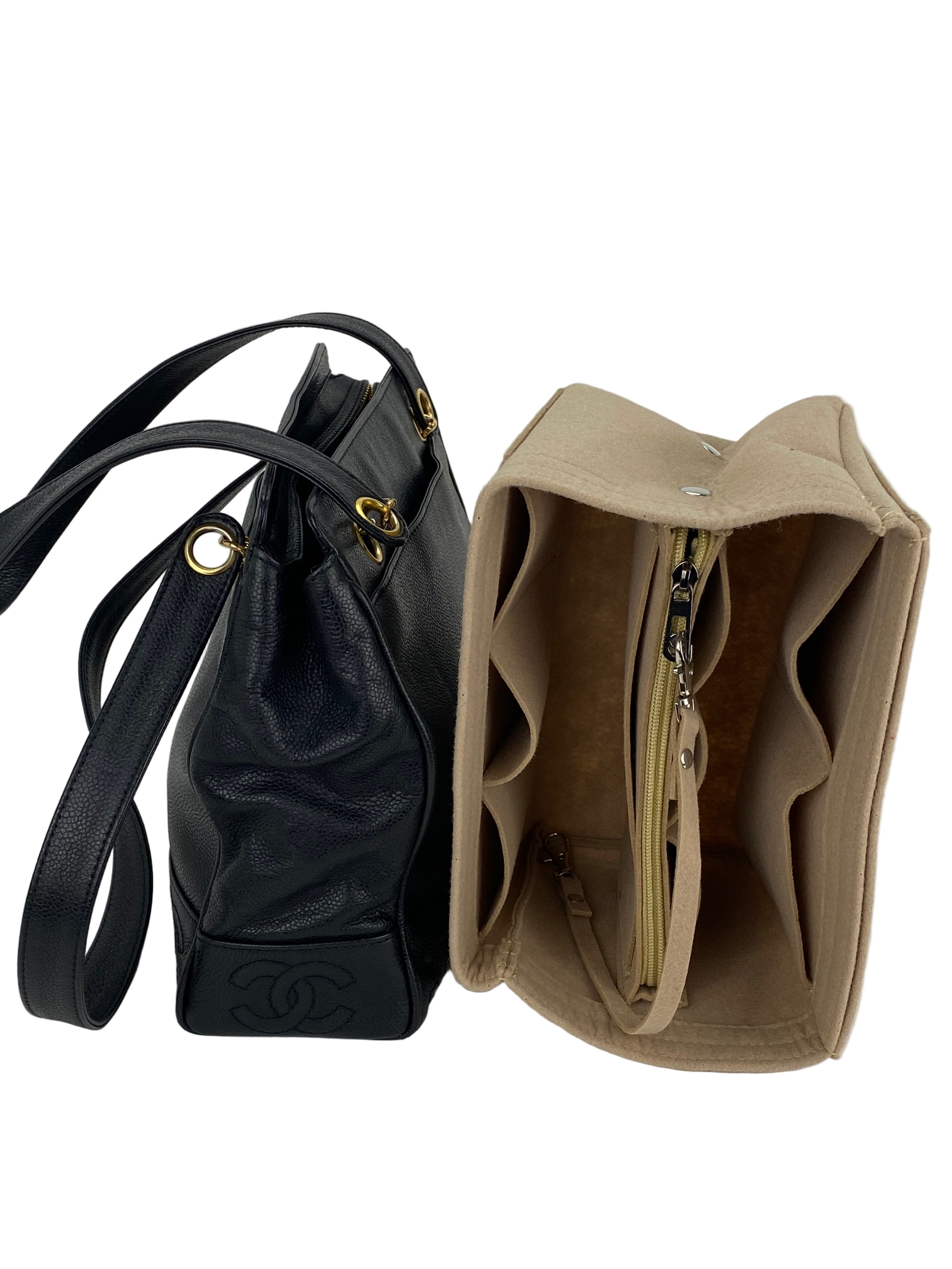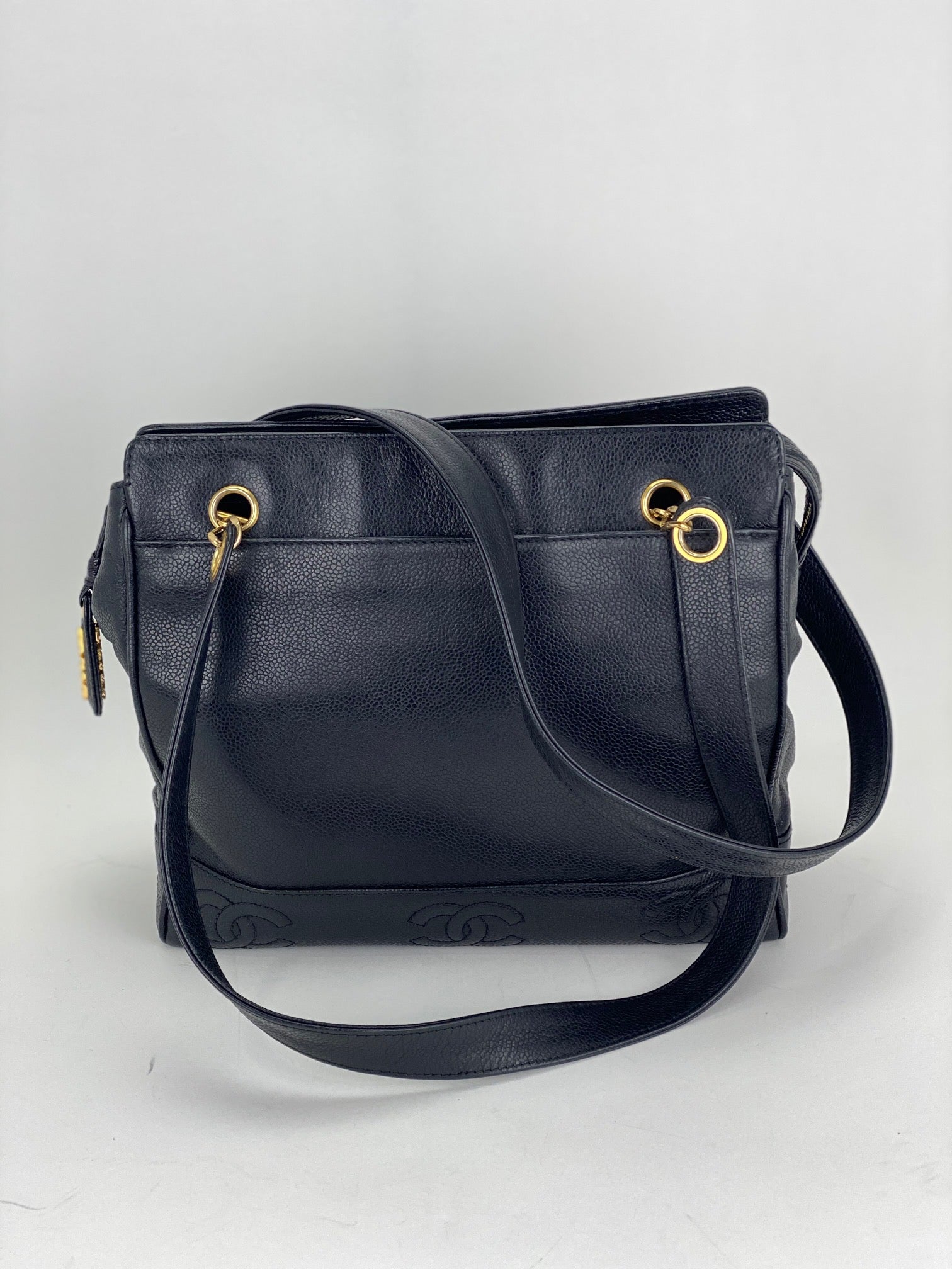 Chanel Vintage Black Caviar Leather CC Zip Tote Shoulder