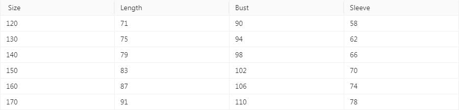 Size: 120cm, 130cm, 140cm, 150cm, 160cm, 170cm