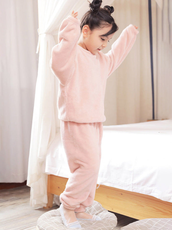 Children'S Embroidered Coral Fleece Pajama Set