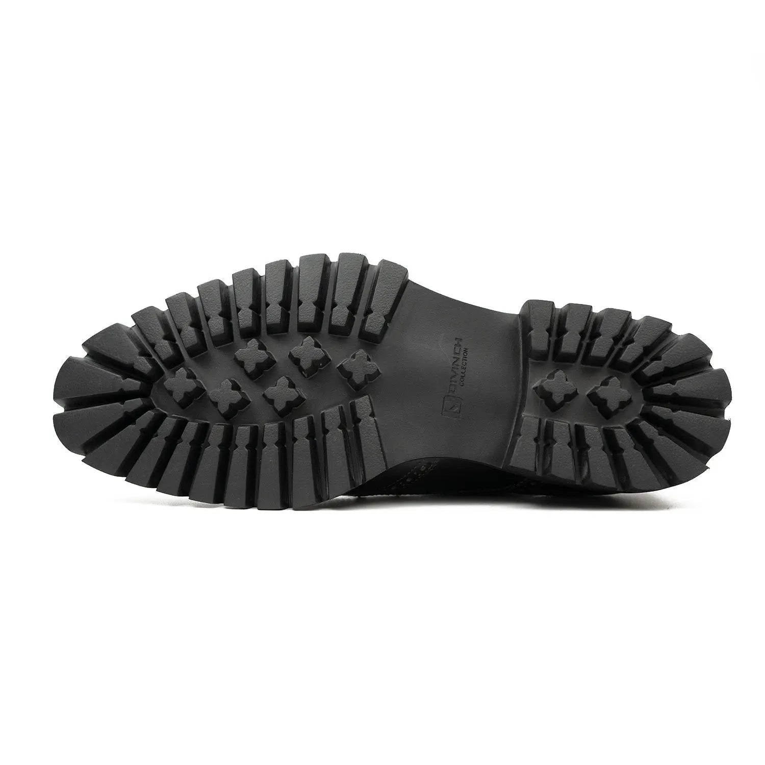 These black Derby brogue shoes, crafted from premium calfskin leather, offer a sophisticated blend of classic style and modern comfort. The intricate brogue detailing on the polished patent leather upper adds a touch of elegance, making them perfect for both formal and semi-formal occasions. Featuring a cushioned rubber sole, these shoes provide exceptional comfort and durability, ideal for long hours of wear. The foam rubber outsole ensures superior traction and shock absorption, making these shoes as functional as they are stylish. Whether you're heading to the office or a special event, these black Derby brogue shoes are a must-have addition to your wardrobe.
