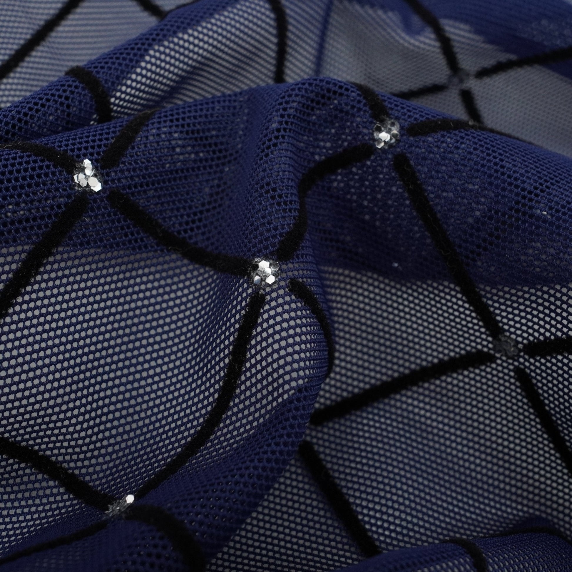 Diamonds Flocked Stretch Mesh Fabric | Blue Moon Fabrics