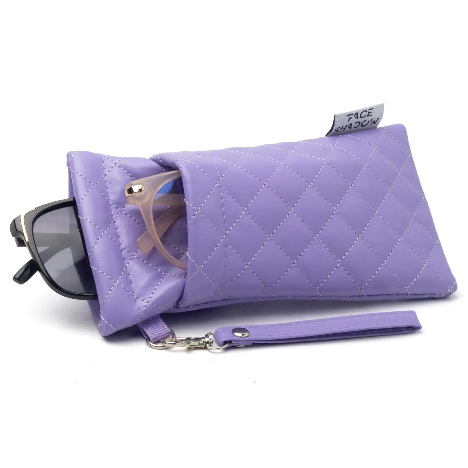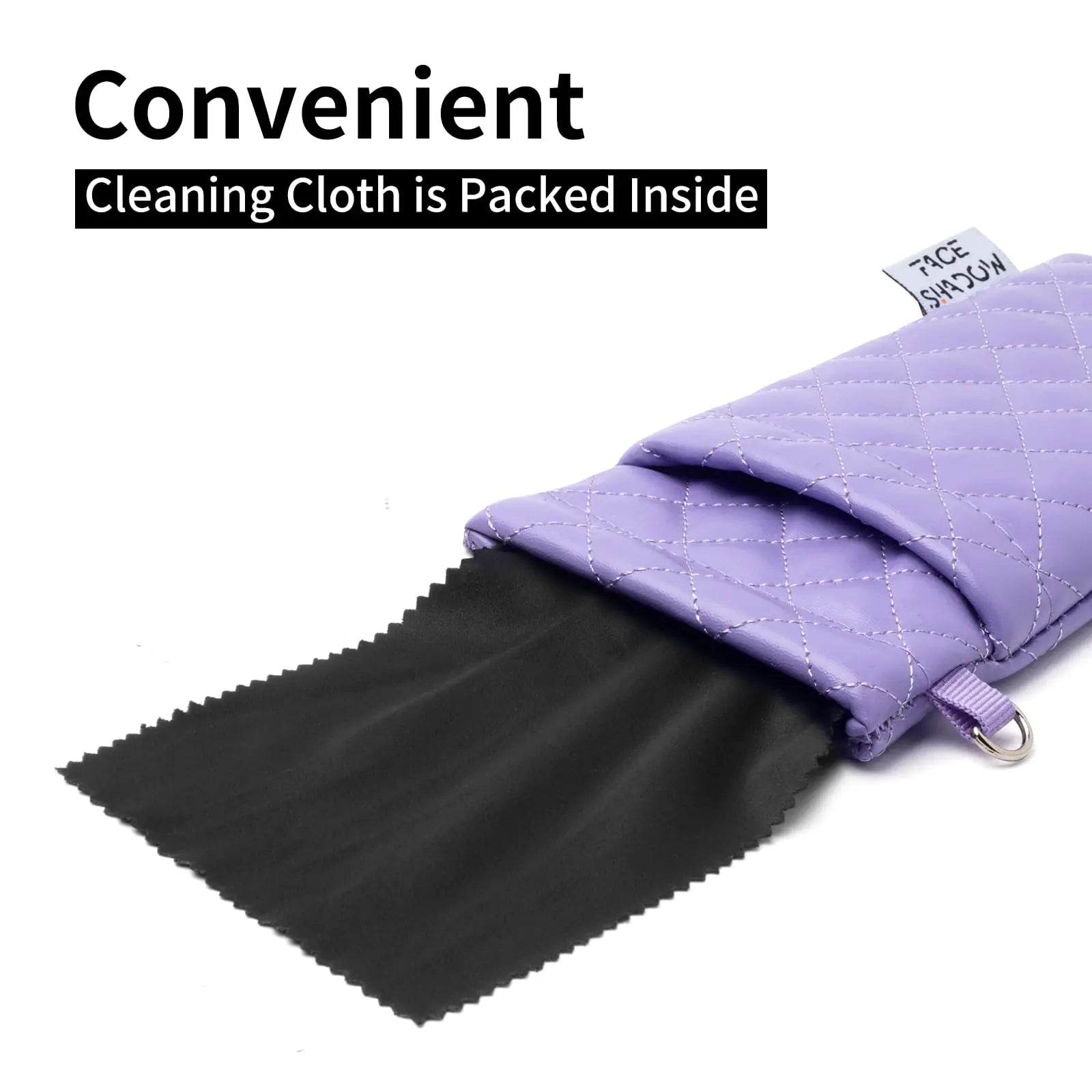 Face Shadow Double Glasses Case Soft Eyeglass Case For Women Men Squeeze Top Sunglasses Case With Cleaning Cloth Pu Purple