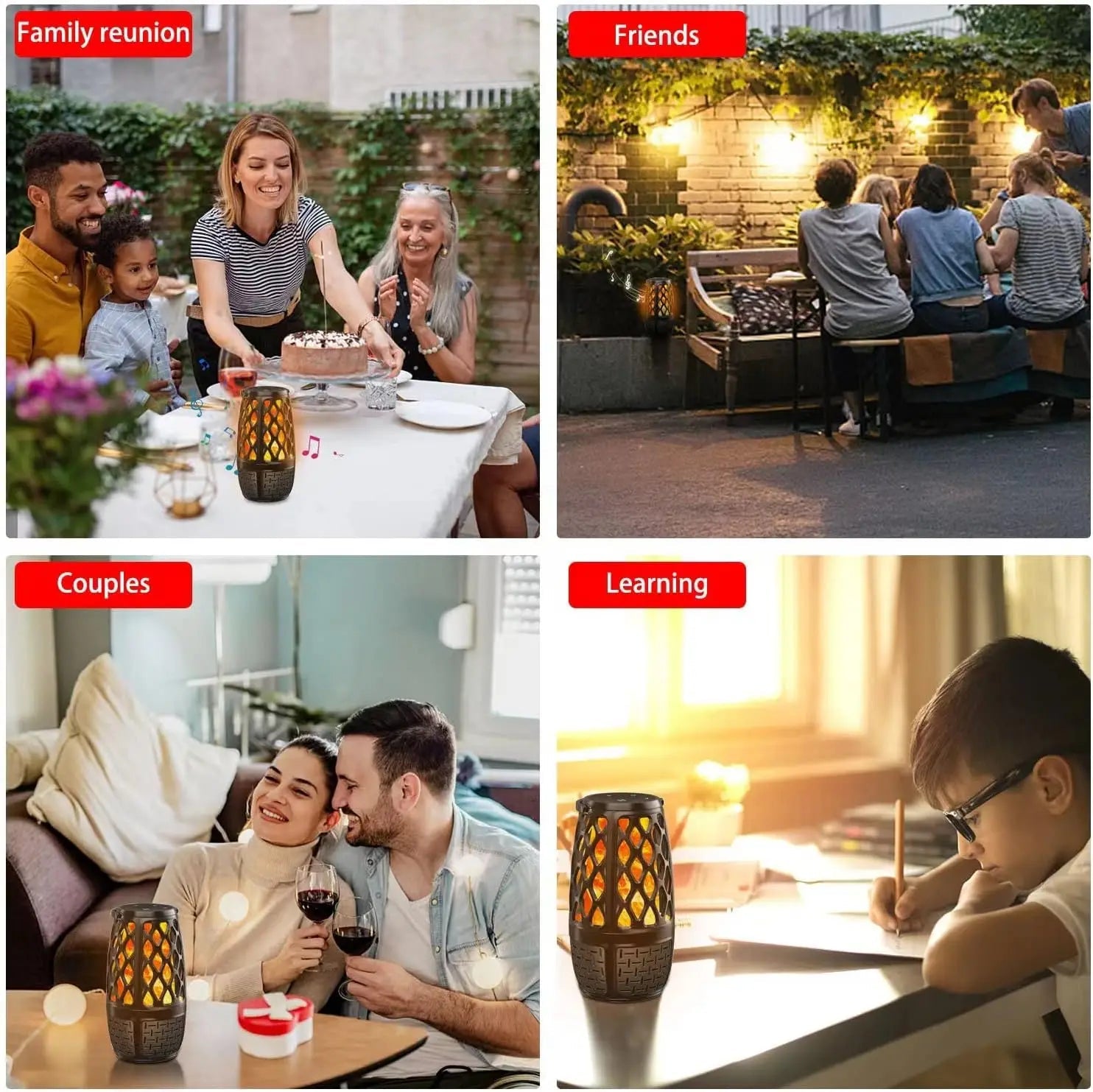 Bring your gatherings to life with the Flame Bluetooth Speaker's mesmerizing LED flame lights. These vibrant lights sync with your music, creating a captivating visual display that sets the perfect mood for any occasion. Let the dynamic illumination turn every event into a memorable celebration.