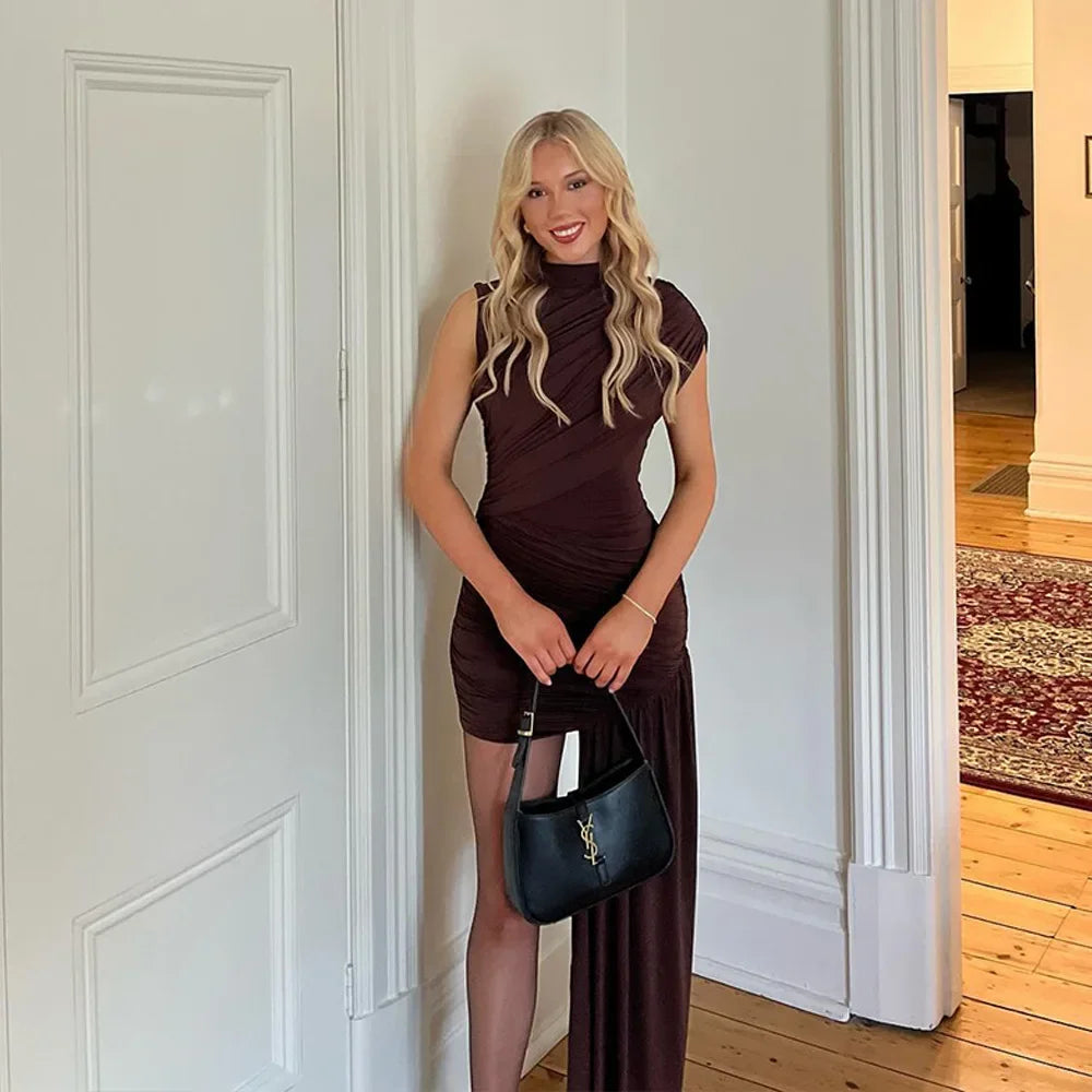 Step into urban sophistication with the MsChuh pleated mini dress. This 2025 streetwear-inspired design combines dramatic irregular hem, playful tassels, and a slim high-waist silhouette, creating the ultimate fashion-forward look for city nights and club events.