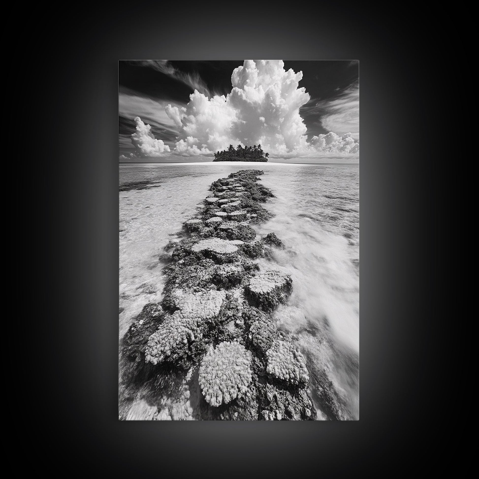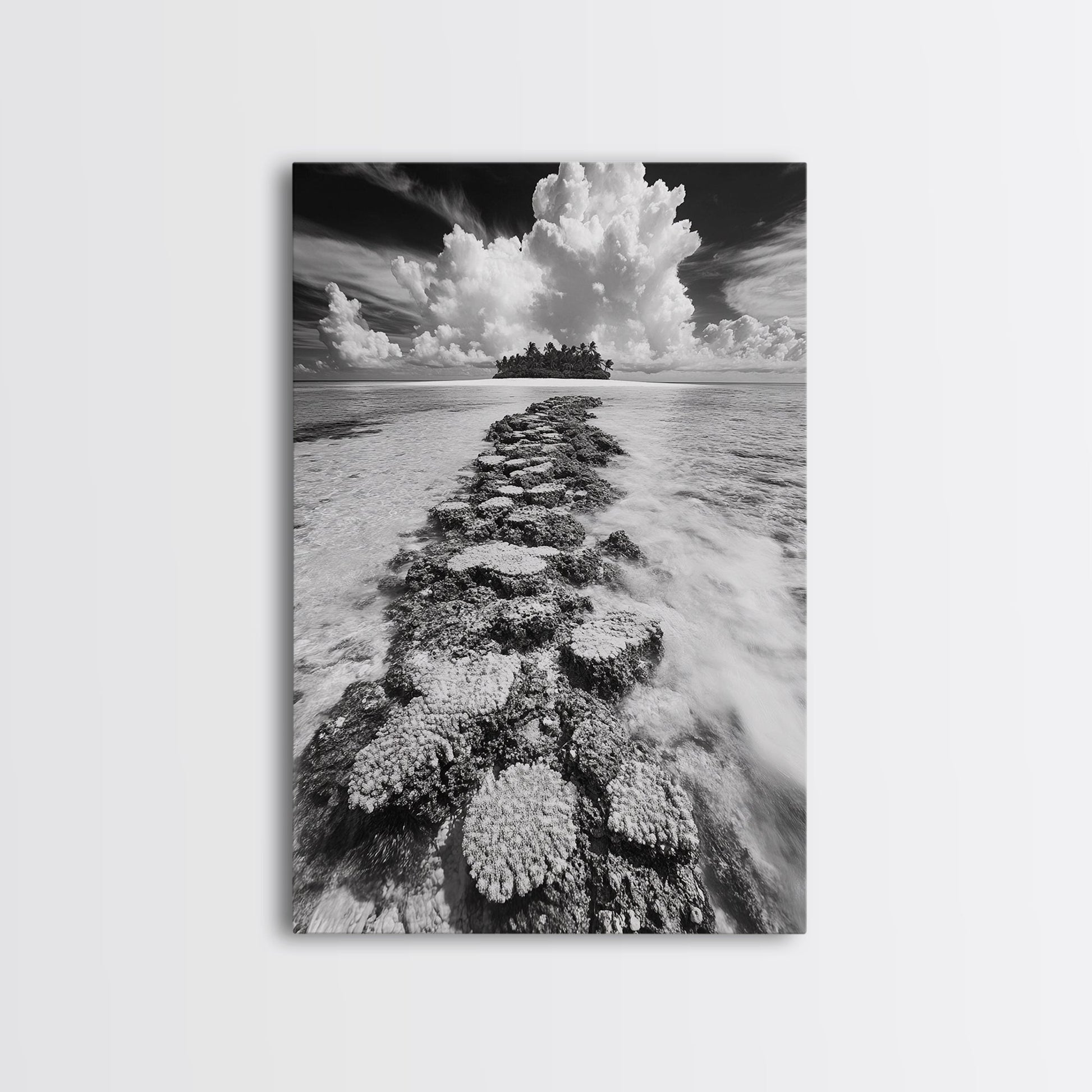 Island Cloud Escape, Ocean Path Scene, Tropical Seascape, Canvas Print, Coastal Beach House Art, Summer Island Vibes Wall Art