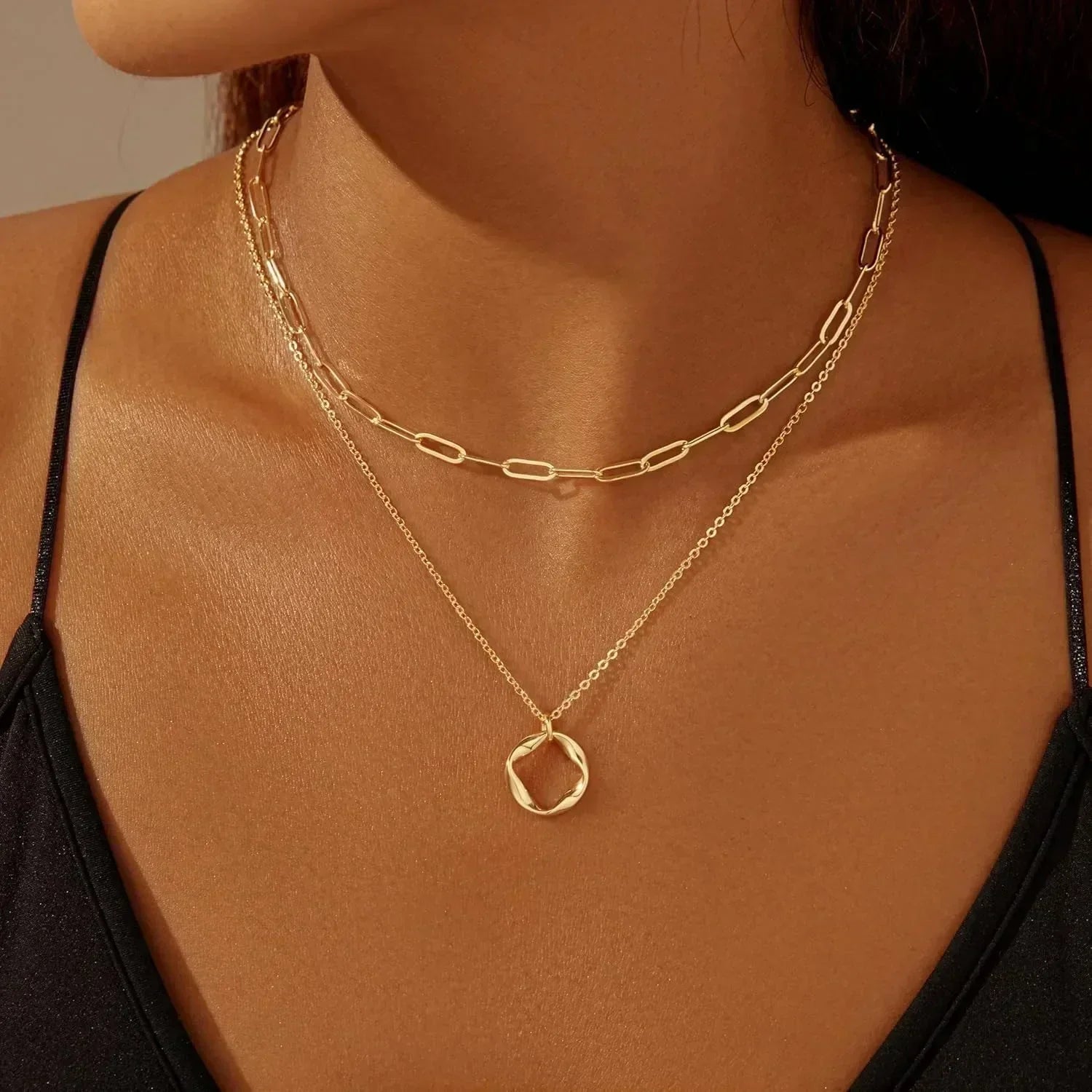 Layered Gold Necklaces for Women Stackable14K Gold Silver Plated Circle Paperclip Chain Pendant Choker Necklace Set For Woman