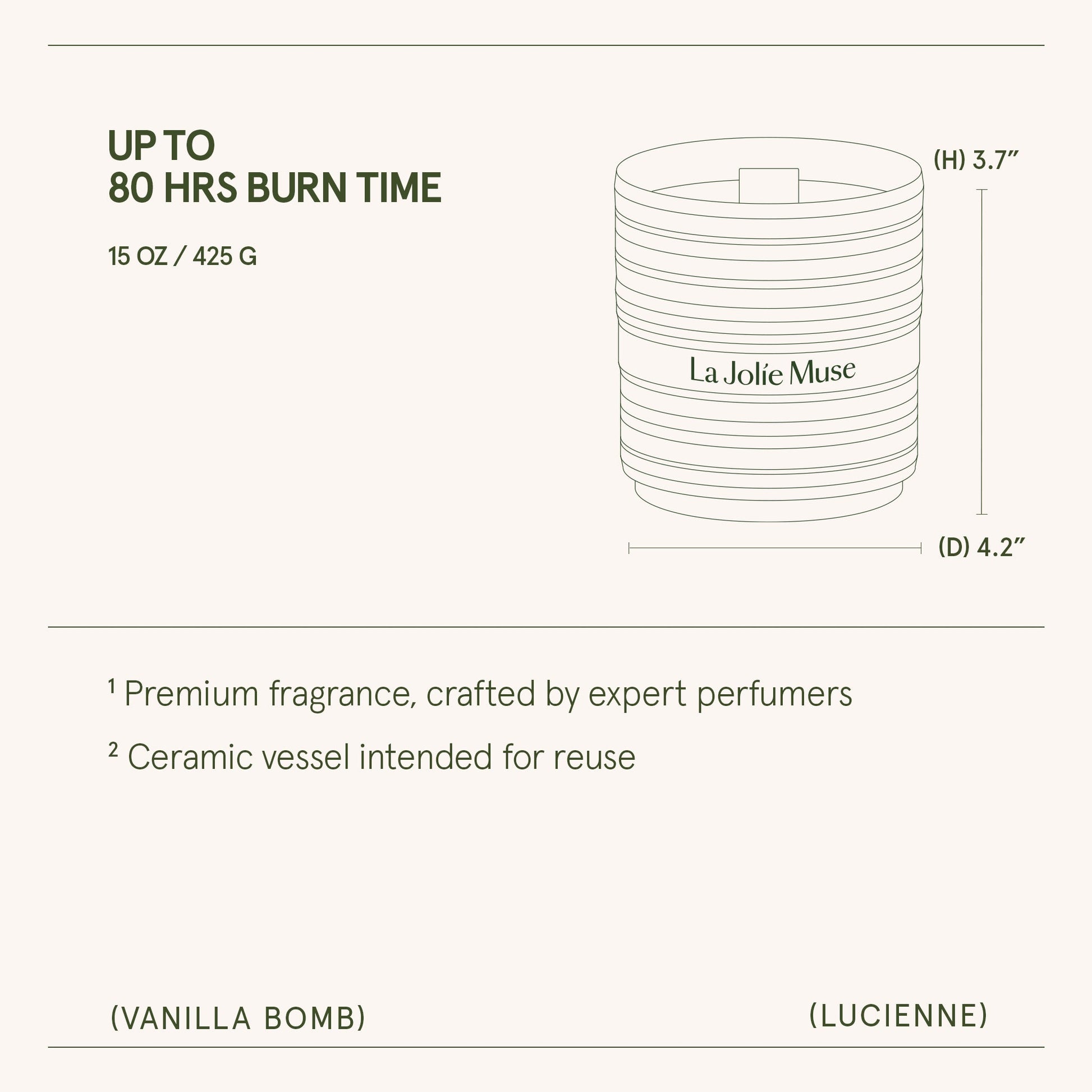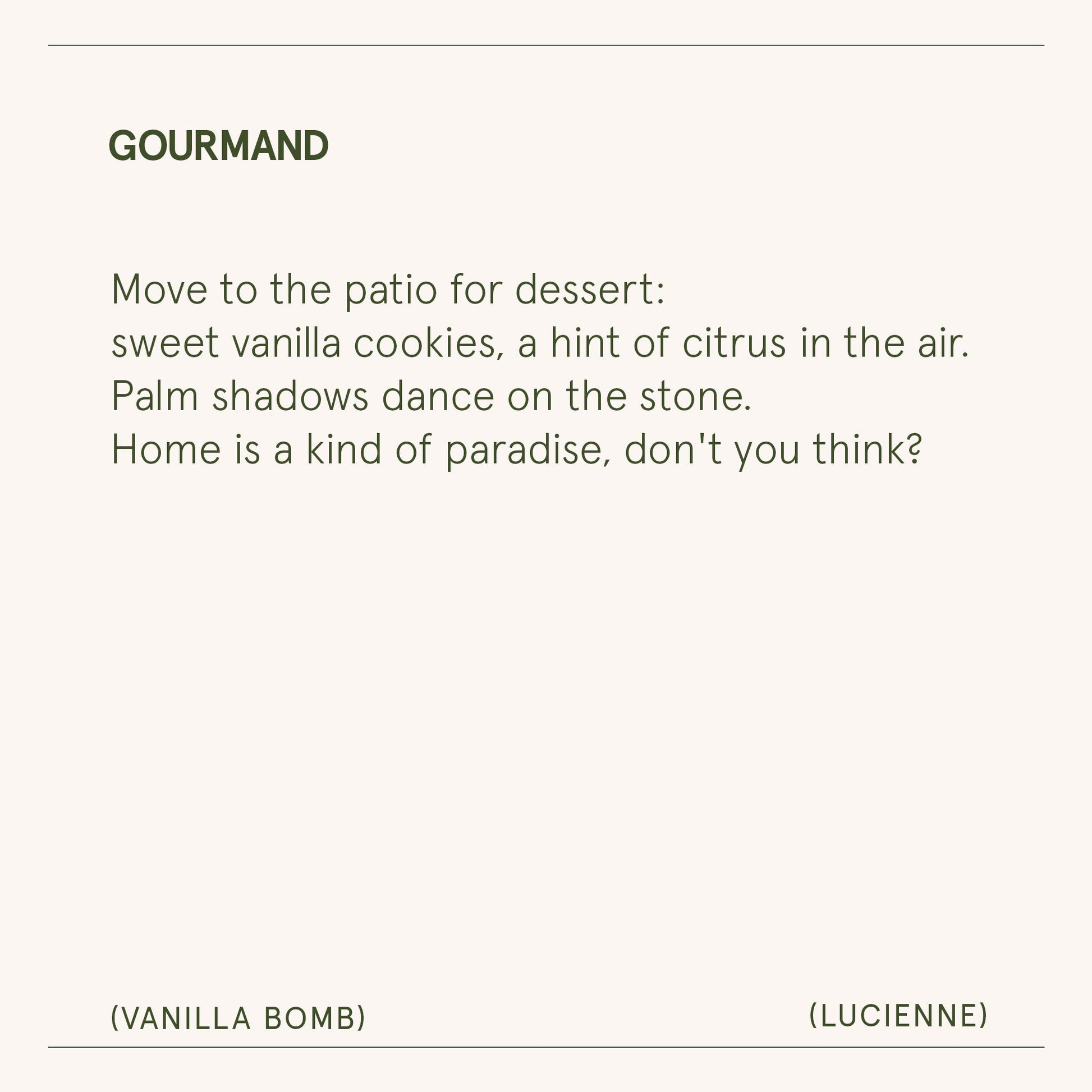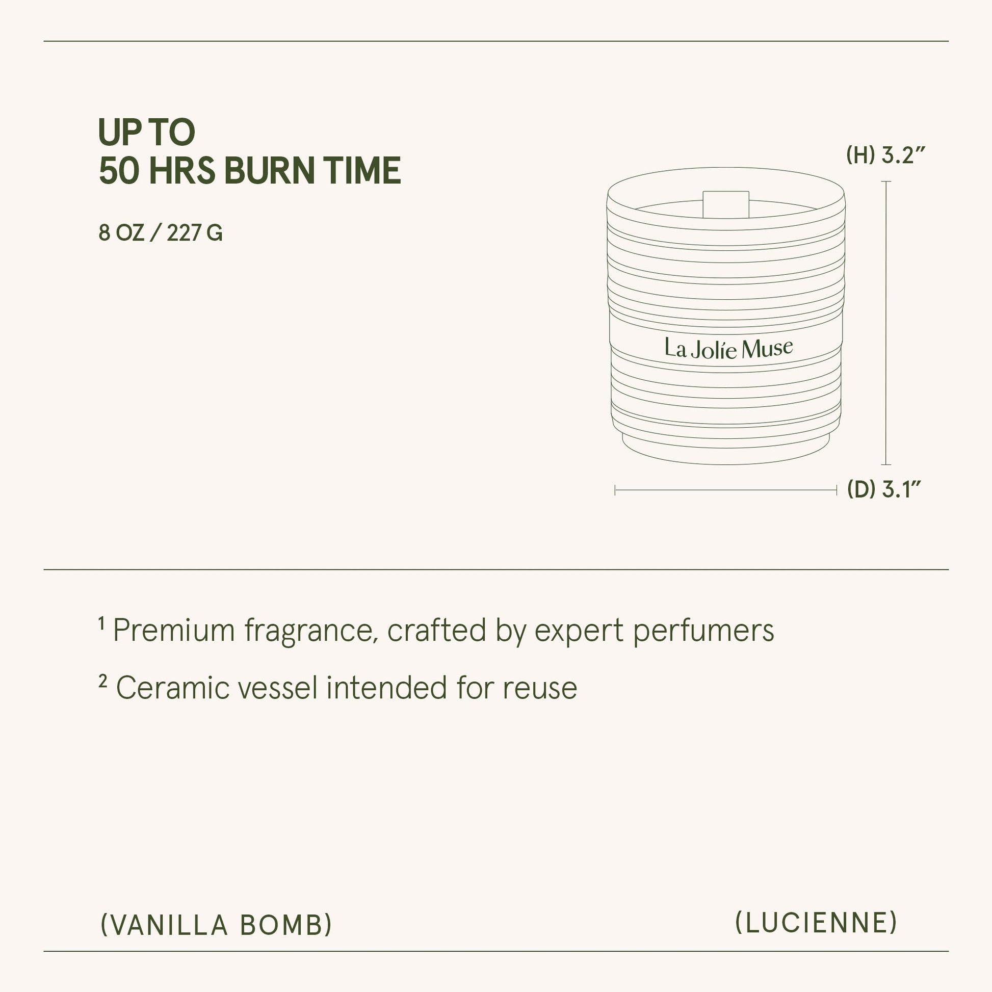 Lucienne’s Vanilla Bomb Candle is pure comfort — rich vanilla sweetness with a warm, indulgent finish that wraps the space in soft, luxe bliss.