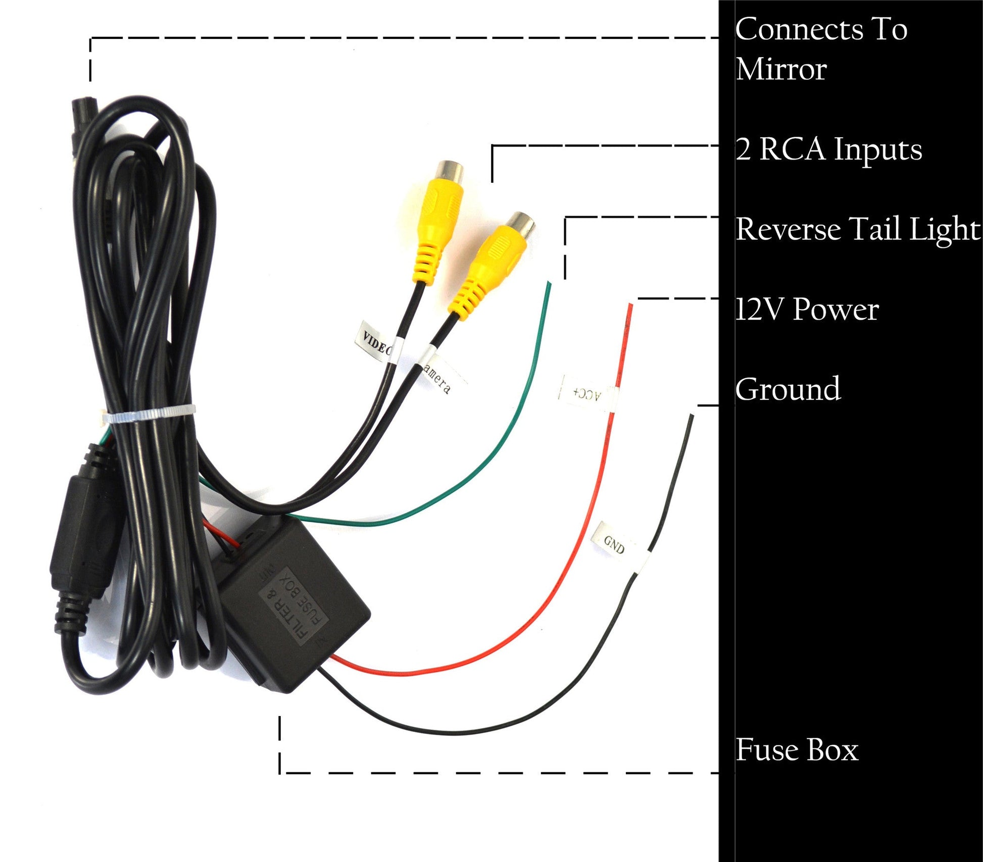 Plugs in to most Backup Cameras with RCA Inputs **Backup Camera Not Included**