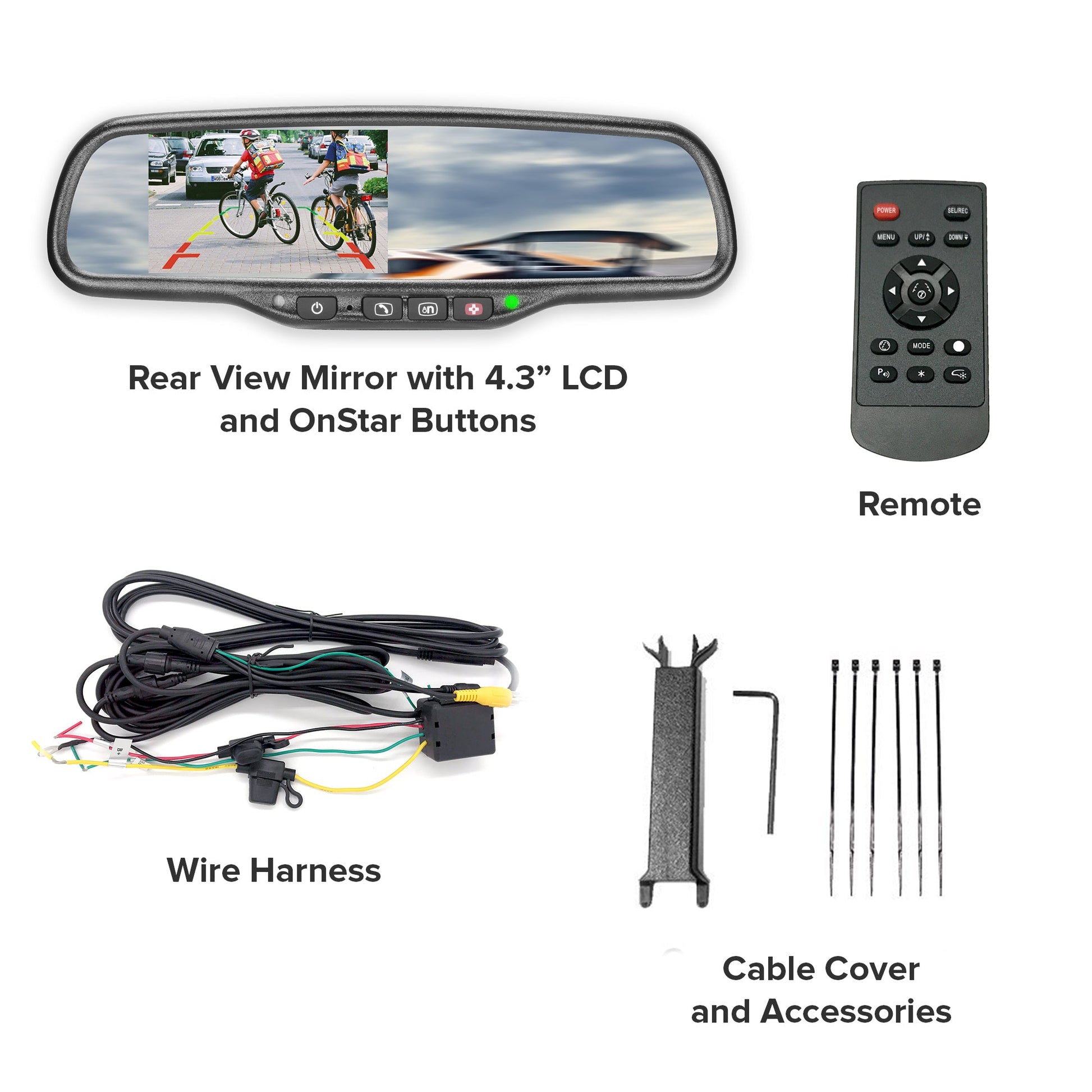 The OEM replacement Ultra Bright 4.3" LCD Rear View Mirror with OnStar Buttons fully replaces your current rear view mirror and hooks into the existing wire for your OnStar services. It has a LCD display sensor that will automatically adjust the LCD's brightness to the ambient light.