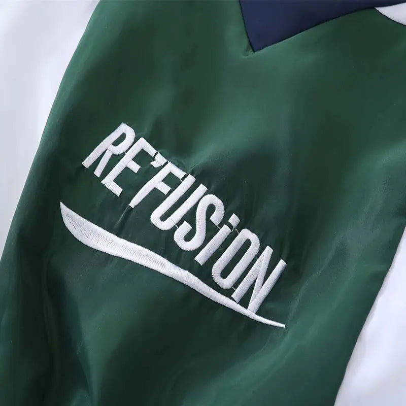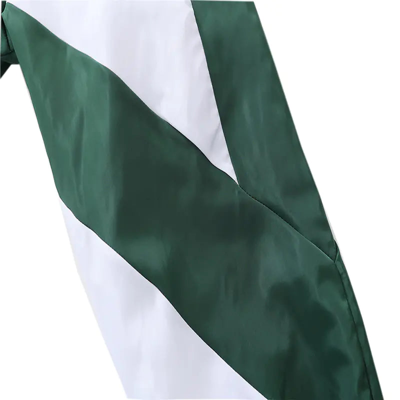 Available in a striking green and bold purple, with sizes ranging from M to XXL, there’s a perfect fit for everyone. The lapel collar gives it a classic varsity look, while the stylish embroidery elevates your fashion game.