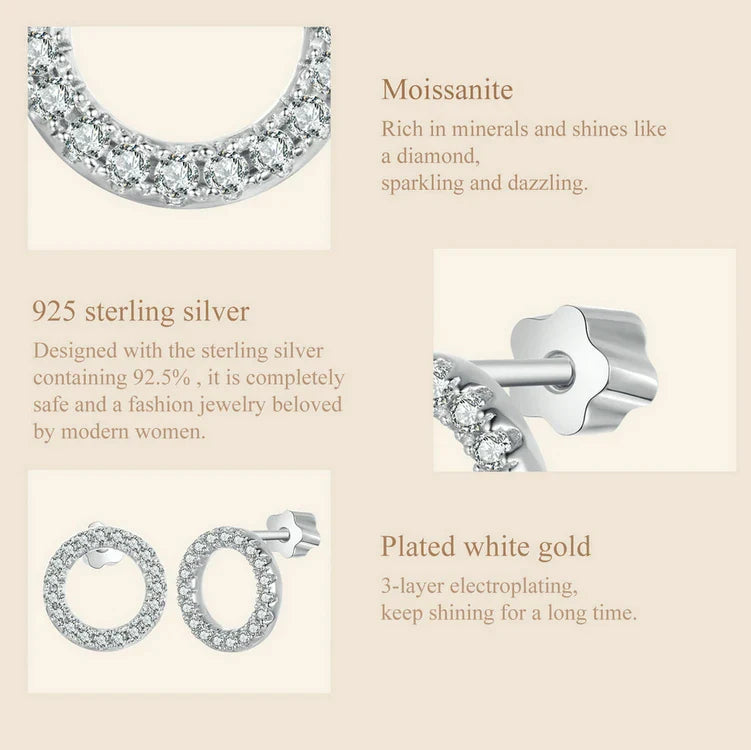 - Metal & setting: 100% 925 sterling silver with white gold/platinum plating (plated finish for extra shine). Stamp: S925.