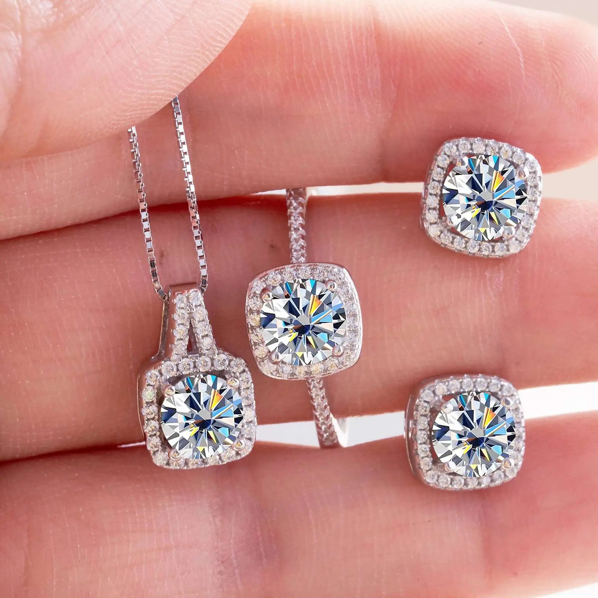 Classic sparkle made everyday-ready — this moissanite pendant necklace and matching stud earrings set pairs brilliant shine with lightweight comfort, perfect for weddings, parties, or daily wear. Enjoy diamond‑like fire and durable wear from premium lab‑created moissanite set in genuine 925 sterling silver.