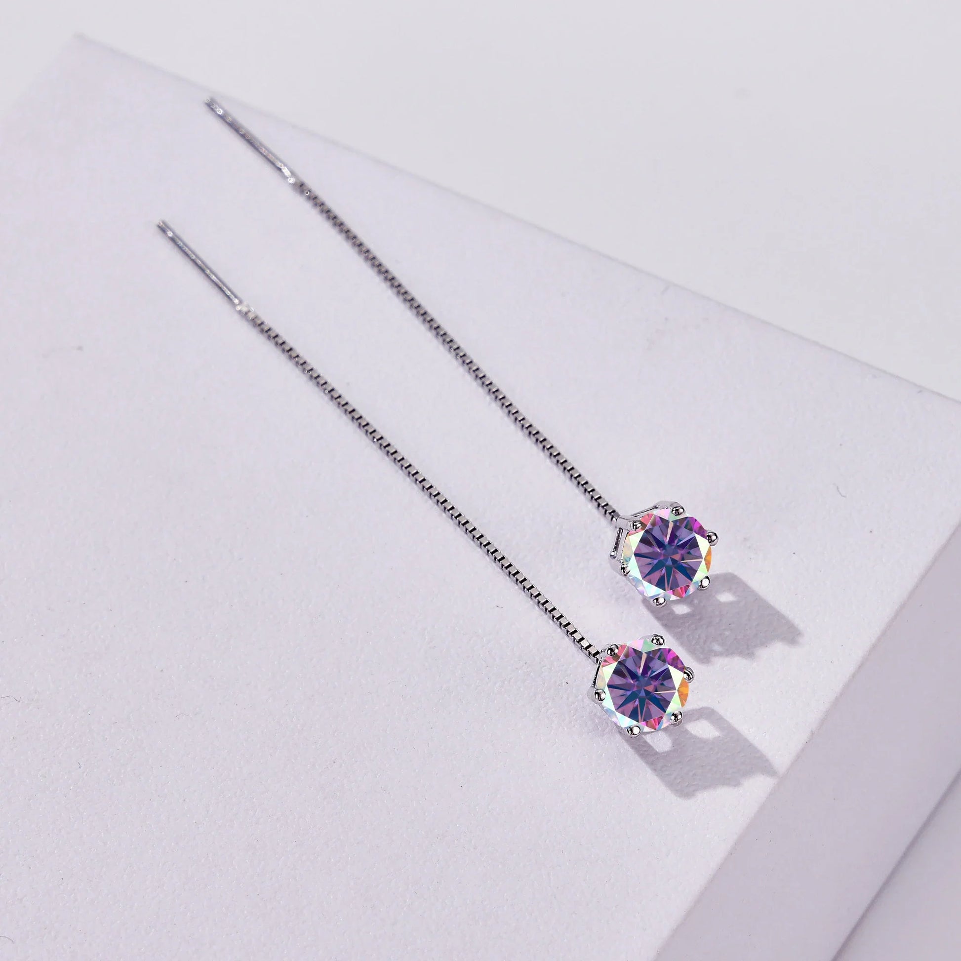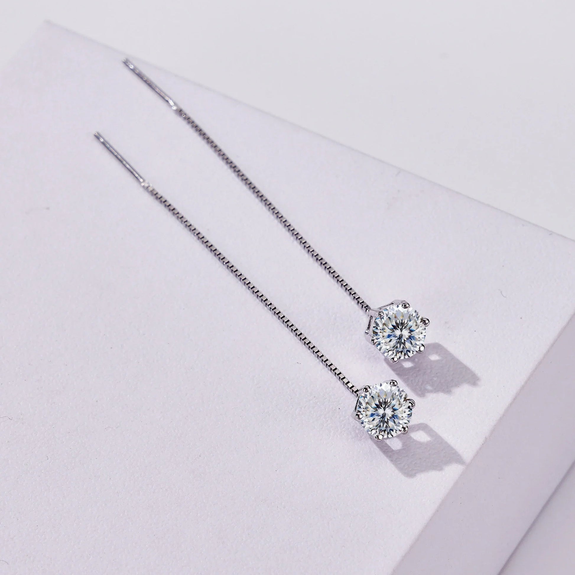 These Moissanite drop earrings combine classic solitaire sparkle with lightweight comfort—perfect for everyday wear or special occasions. They give the brilliant fire of moissanite in a clean sterling silver setting, so you get dazzling style without the heavy price tag.