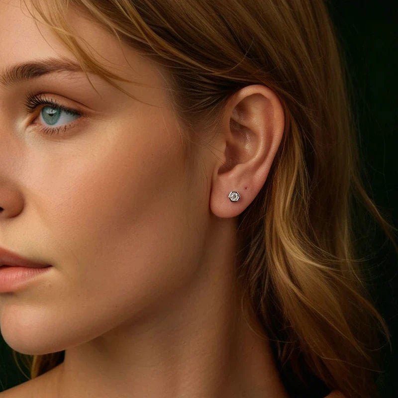 These Moissanite Hexagonal Stud Earrings pair everyday comfort with sparkling style — perfect for gifting, engagements, or adding a refined finish to any outfit. The secure screw-back bezel keeps the stones close to the ear for comfortable, reliable wear.