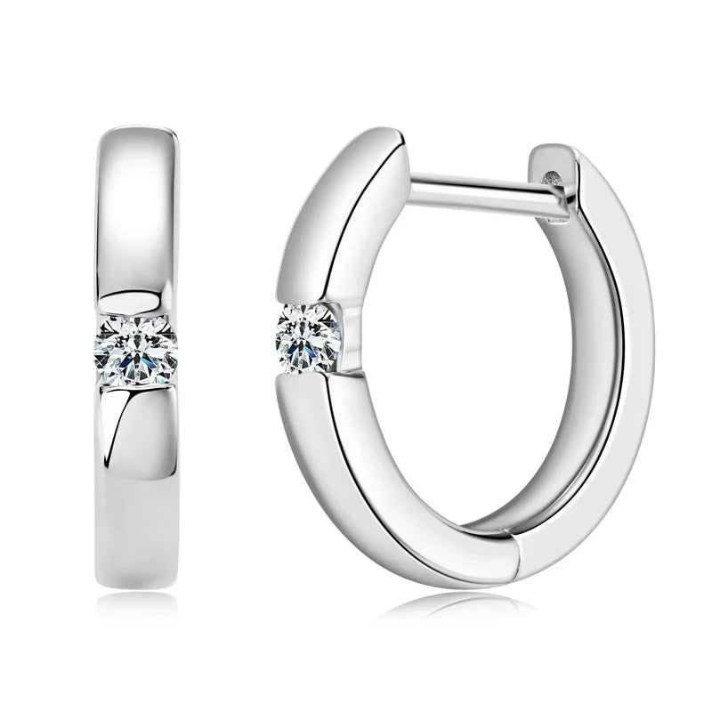 Moissanite Hoop Earrings 2mm VVS1 925 Sterling Silver Simple Unisex Gift