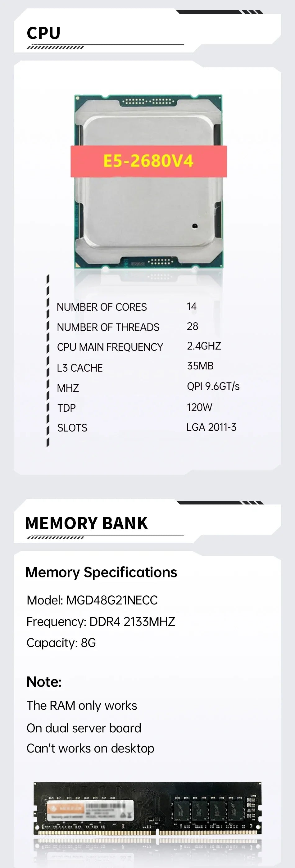 Motherboard+CPU: 1*MG-X99 D4+1*E5 2680 V4 CPU
