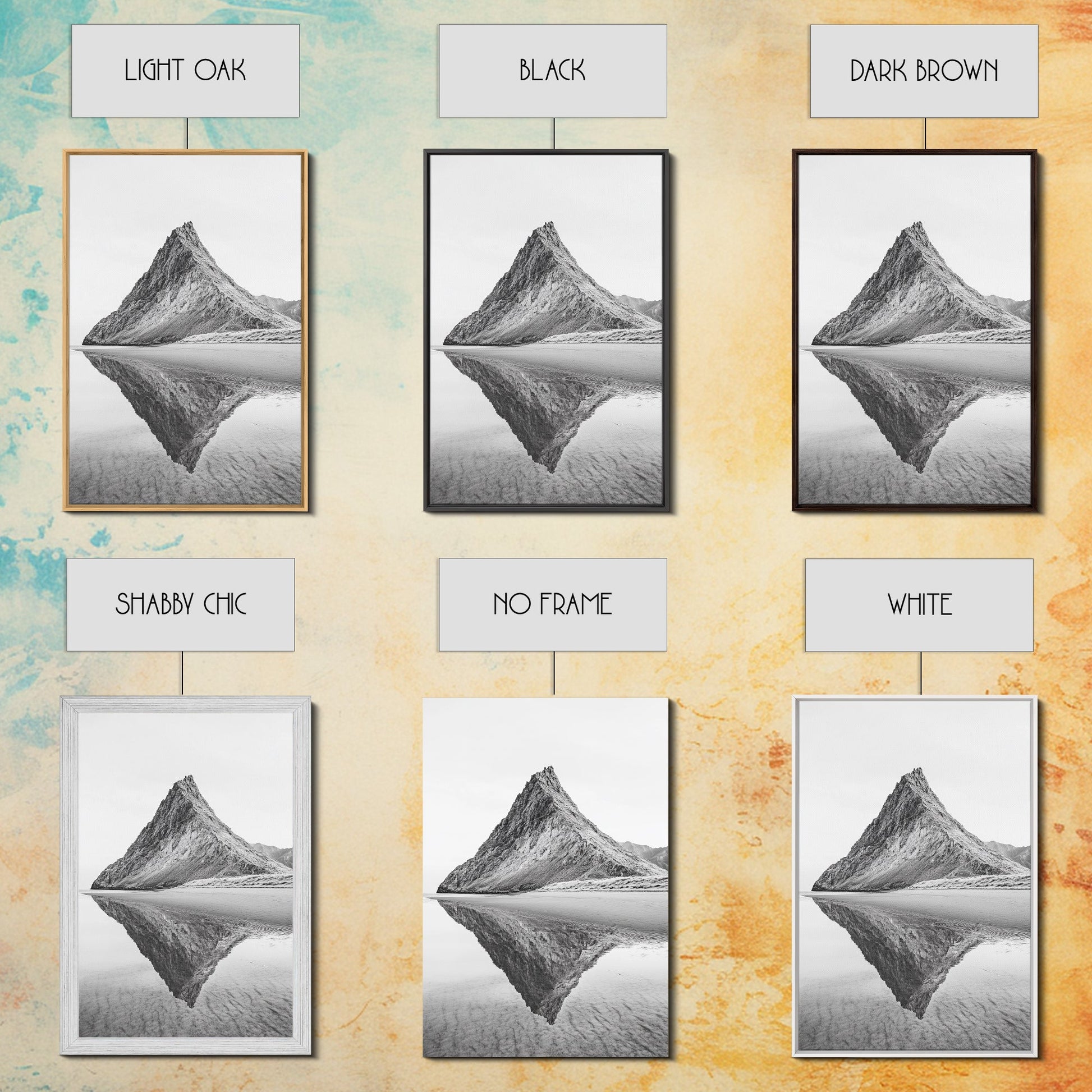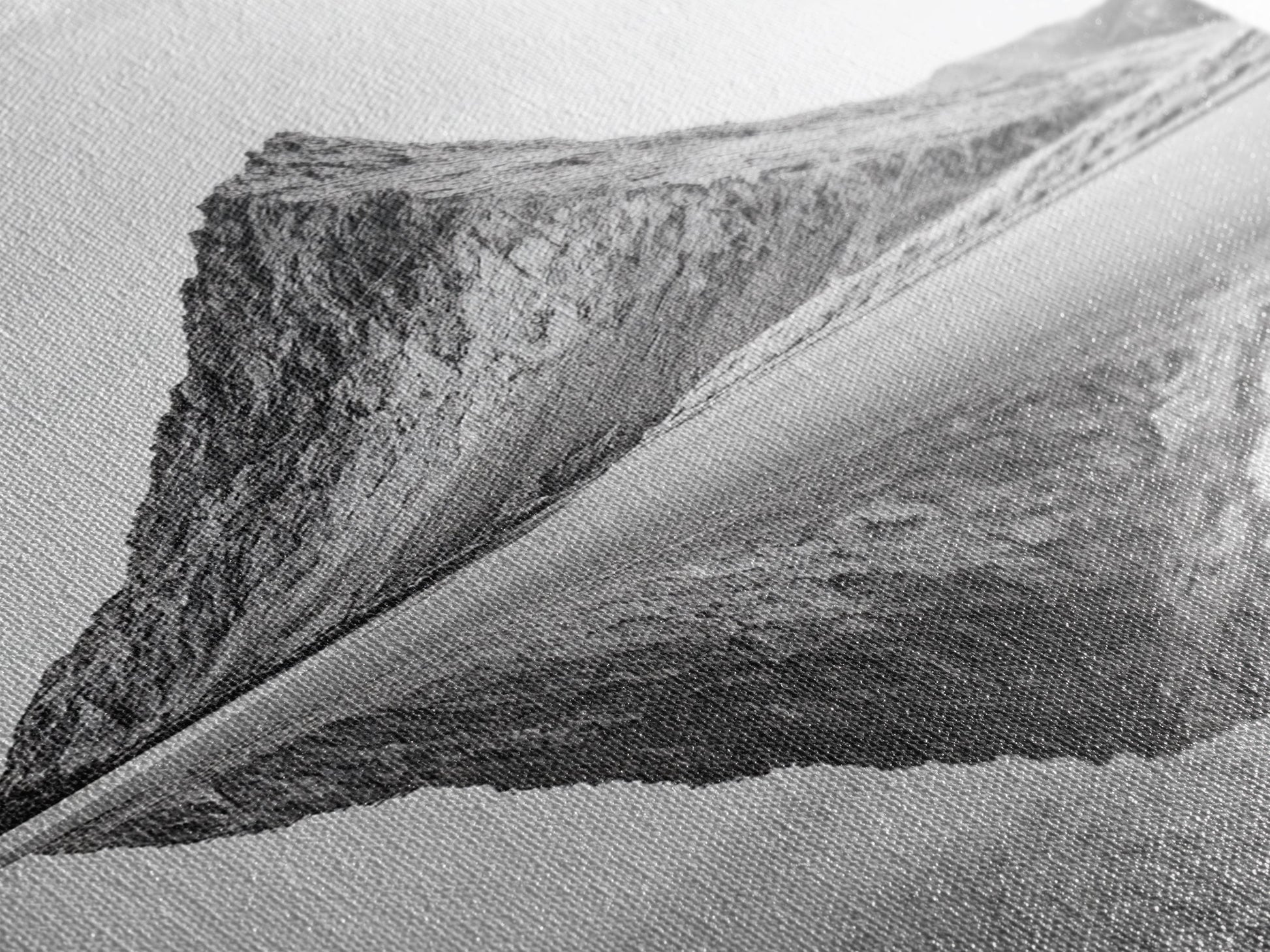 Mountain Mirror, Coastal Peak, Serene Beach, Canvas Print, Minimalist Landscape Art, Modern Living Room Wall Decor, Monochrome Nature Style