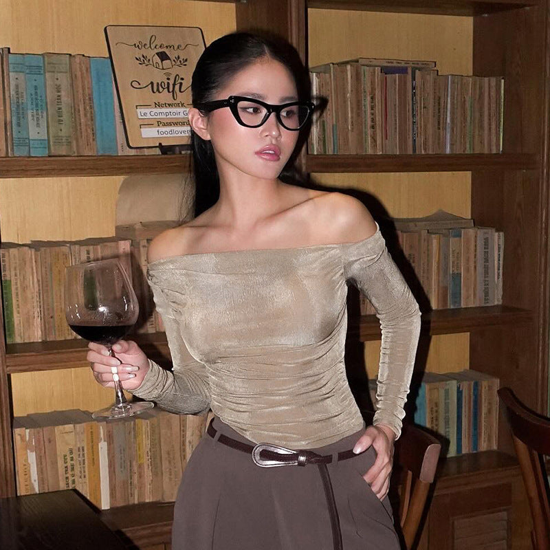 One shoulder long sleeved top as a base for women's clothing