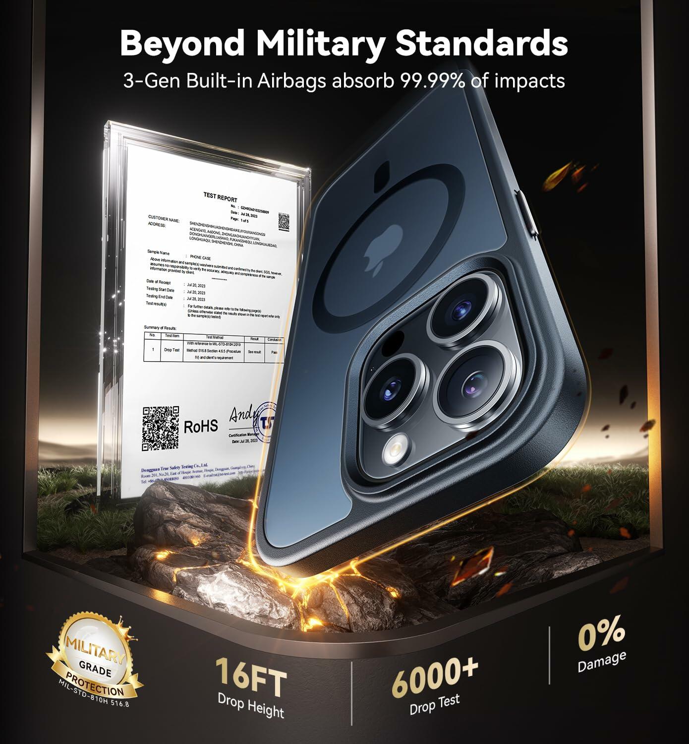 - 【Industry NO.1 Military-Grade Drop Protection】The OPXYL for iPhone 13 Pro Max shockproof case is equipped with 3-Gen airbags at the corners to absorb 99.99% of impacts. Up to 16FT drop protection far exceeds industry standards. Note: Data from lab tests (Test environment includes indoor and outdoor.)
