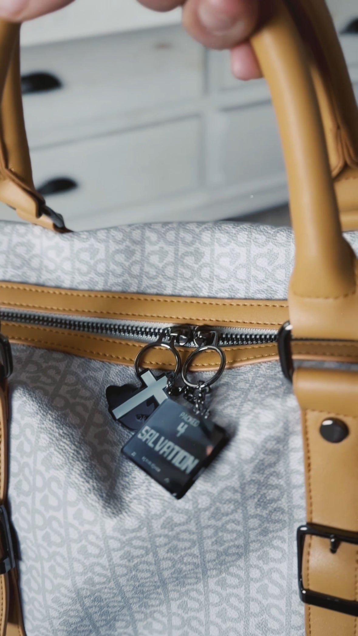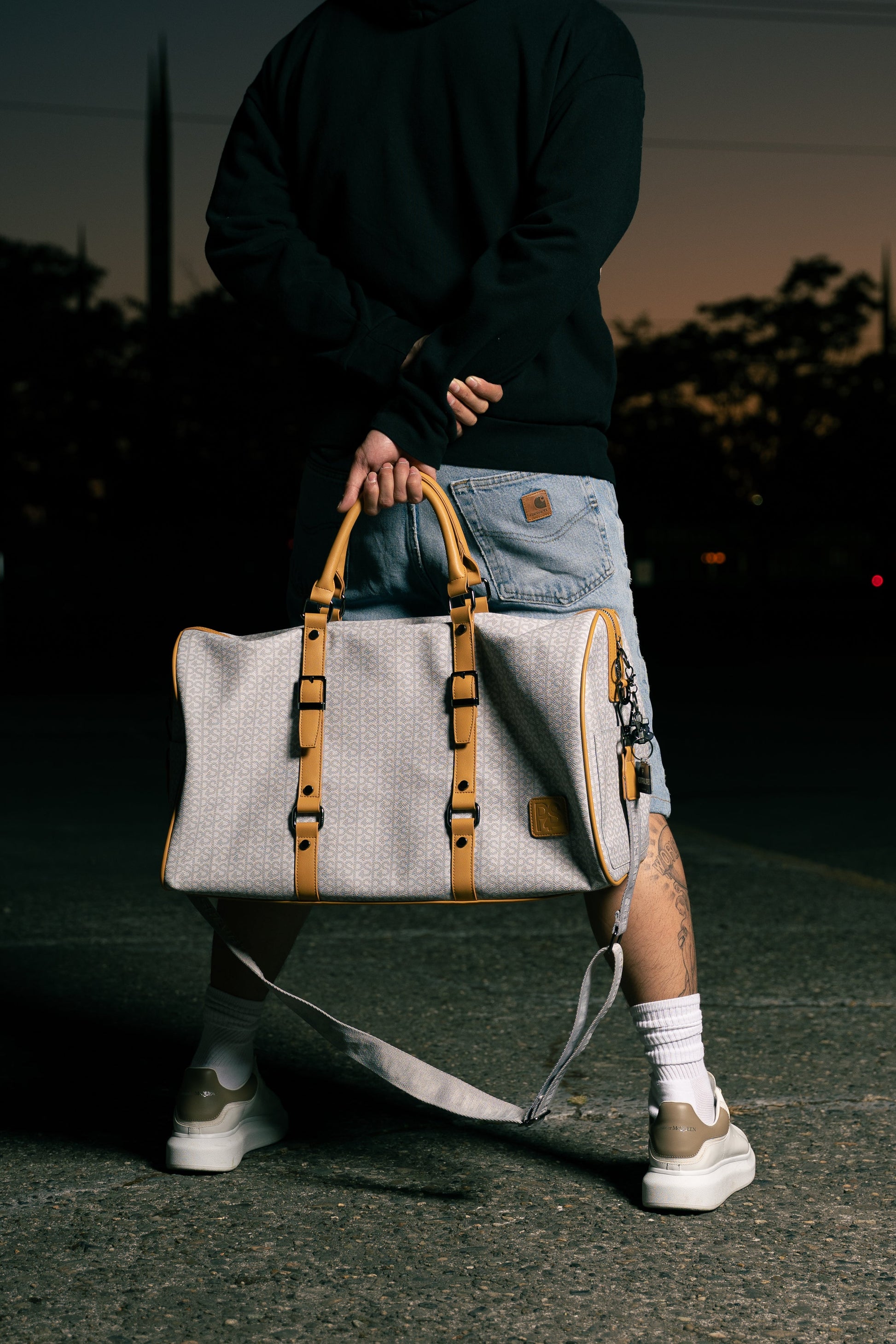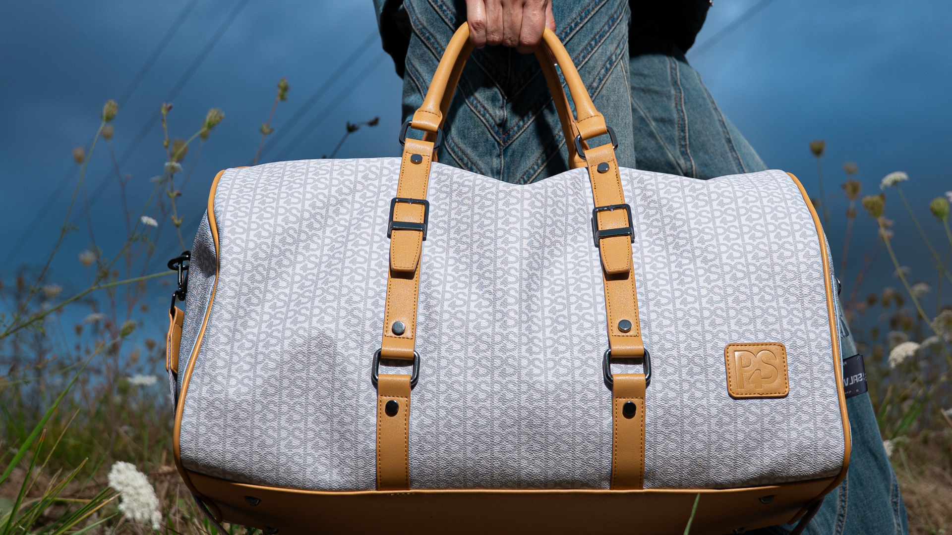 Made from P4S Monogram Printed Canvas with premium leather accents, it offers durability, elegance, and thoughtful organization for all your essentials. This bag symbolizes purpose-driven travel with multiple compartments, a waterproof zippered closure, and faith-based patches.