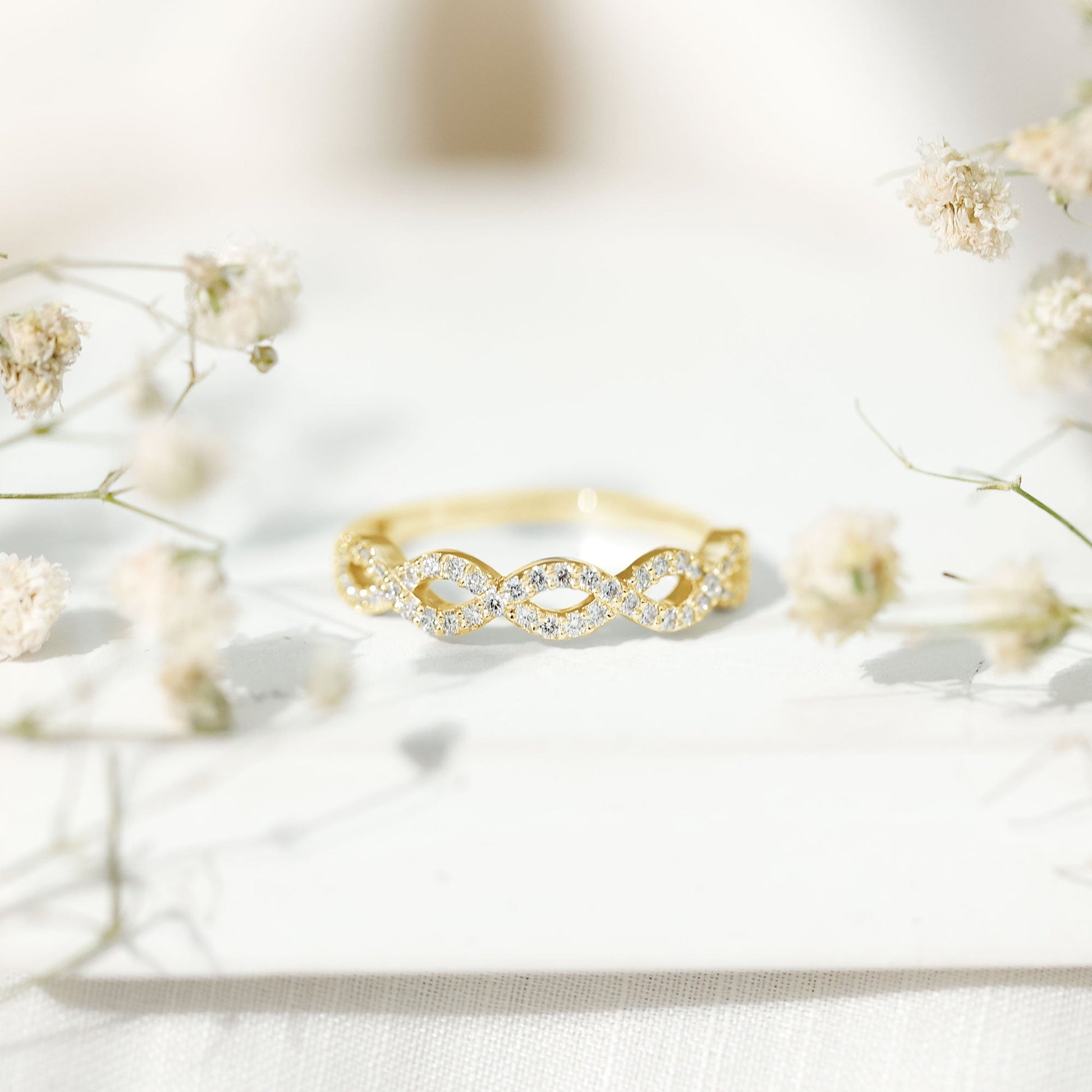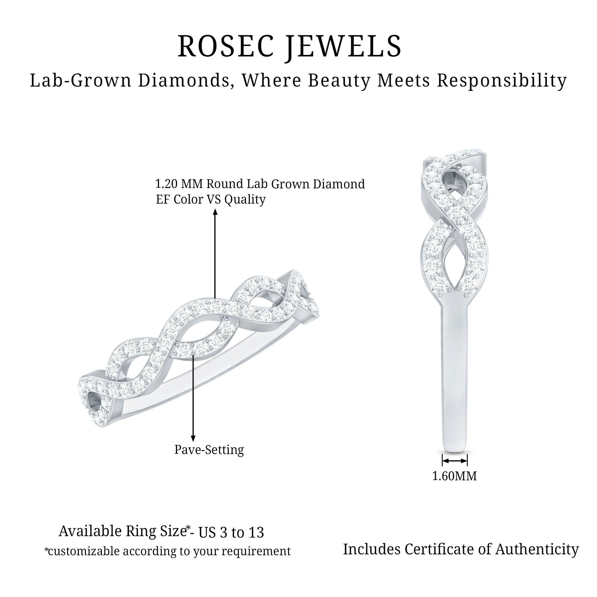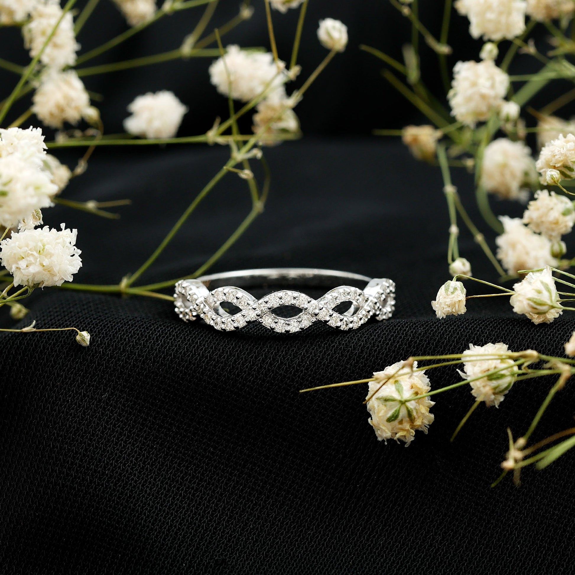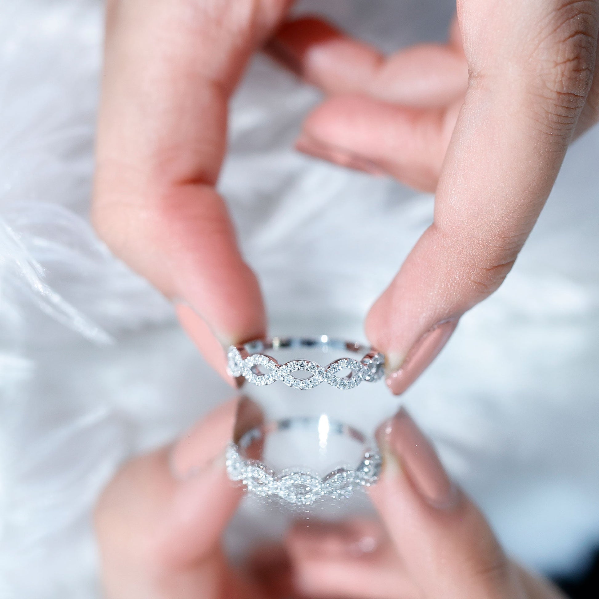 Show your love with this Lab Grown Diamond Infinity Ring that speaks of forever. The Infinity Wedding Band features a smooth, flowing design that is decorated with round lab grown diamonds in pave setting, creating a soft sparkle that lights up with every move. The infinity shape is a strong symbol of never-ending love, trust, and togetherness. It is a reminder that real love has no limits and continues to grow stronger over time. Whether you are marking a wedding, anniversary, or simply a meaningful moment, this Half Eternity Ring makes the message clear: your love is for life. Each lab grown diamond in the Stackable Eternity Ring is of EF-VS quality, offering brilliant sparkle with high clarity and color. The half eternity design offers elegance with everyday comfort. The flowing pattern blends style and meaning, making it perfect for anyone who loves jewelry with a deeper message. Wear it on its own or stack it with another ring, it adds shine and meaning either way. With its graceful shape and heartfelt design, the Lab Diamond Anniversary Band is a lasting symbol of a love that never fades.