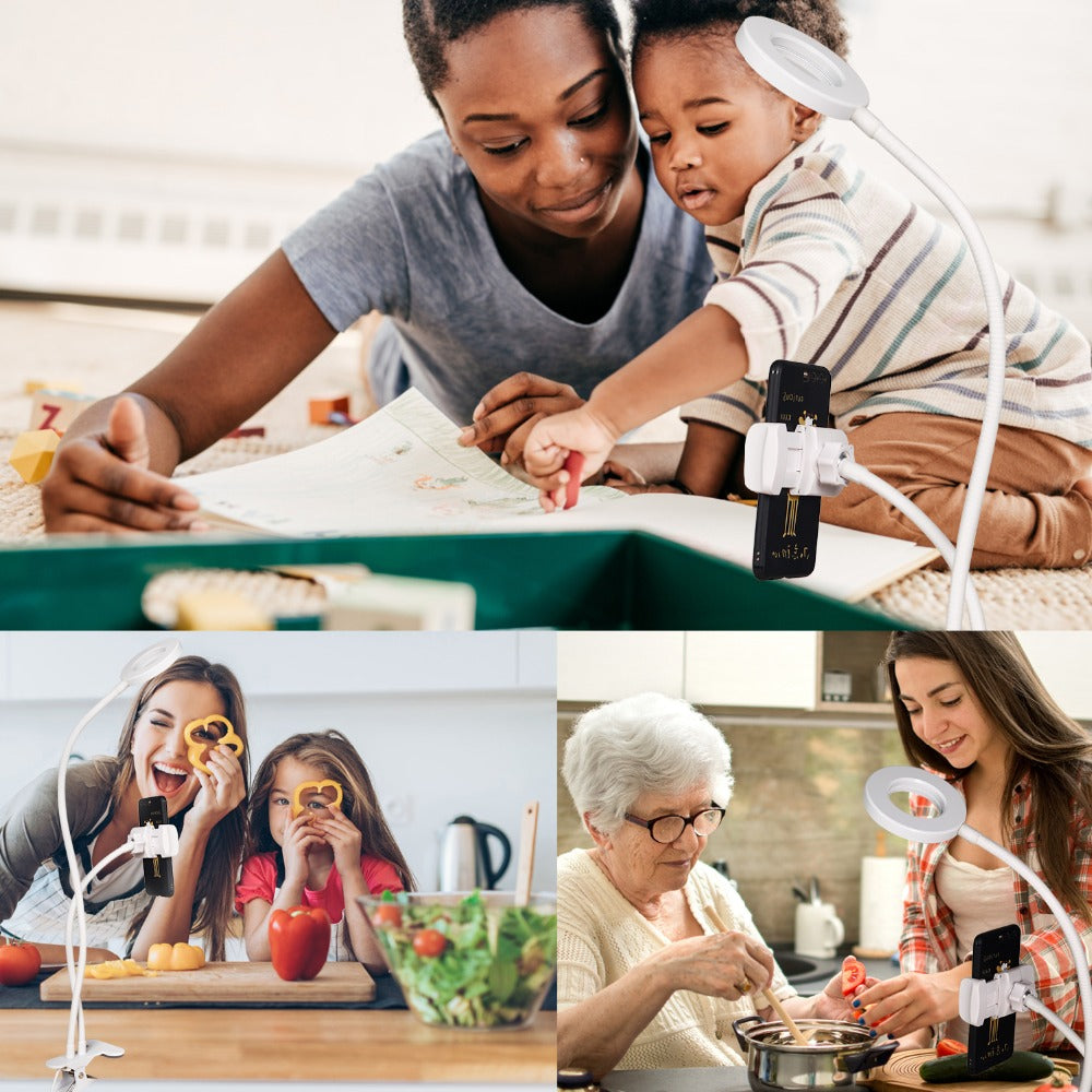Universal Selfie Ring Light with Flexible Mobile Phone Holder Lazy Bracket Desk Lamp LED Light for Live Stream Office Kitchen