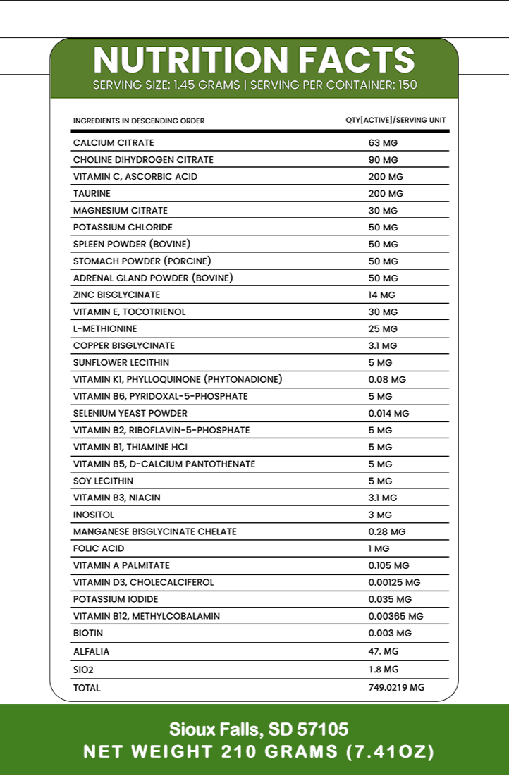 Formulated with a blend of organ-based ingredients—making it a gentle glandular supplement option to support liver, kidney, and heart health