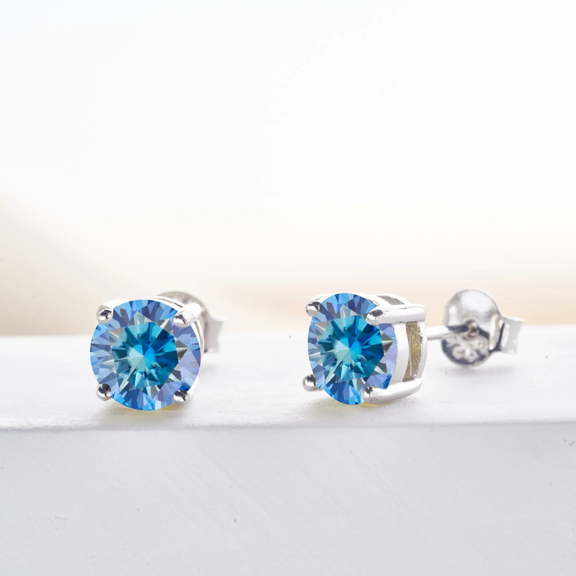 Why you’ll love them: these royal-blue moissanite studs balance timeless elegance with practical design — they’re bright enough for evening events yet refined enough for everyday wear. The screw-back setting and sterling silver build mean you get sparkle plus durability.