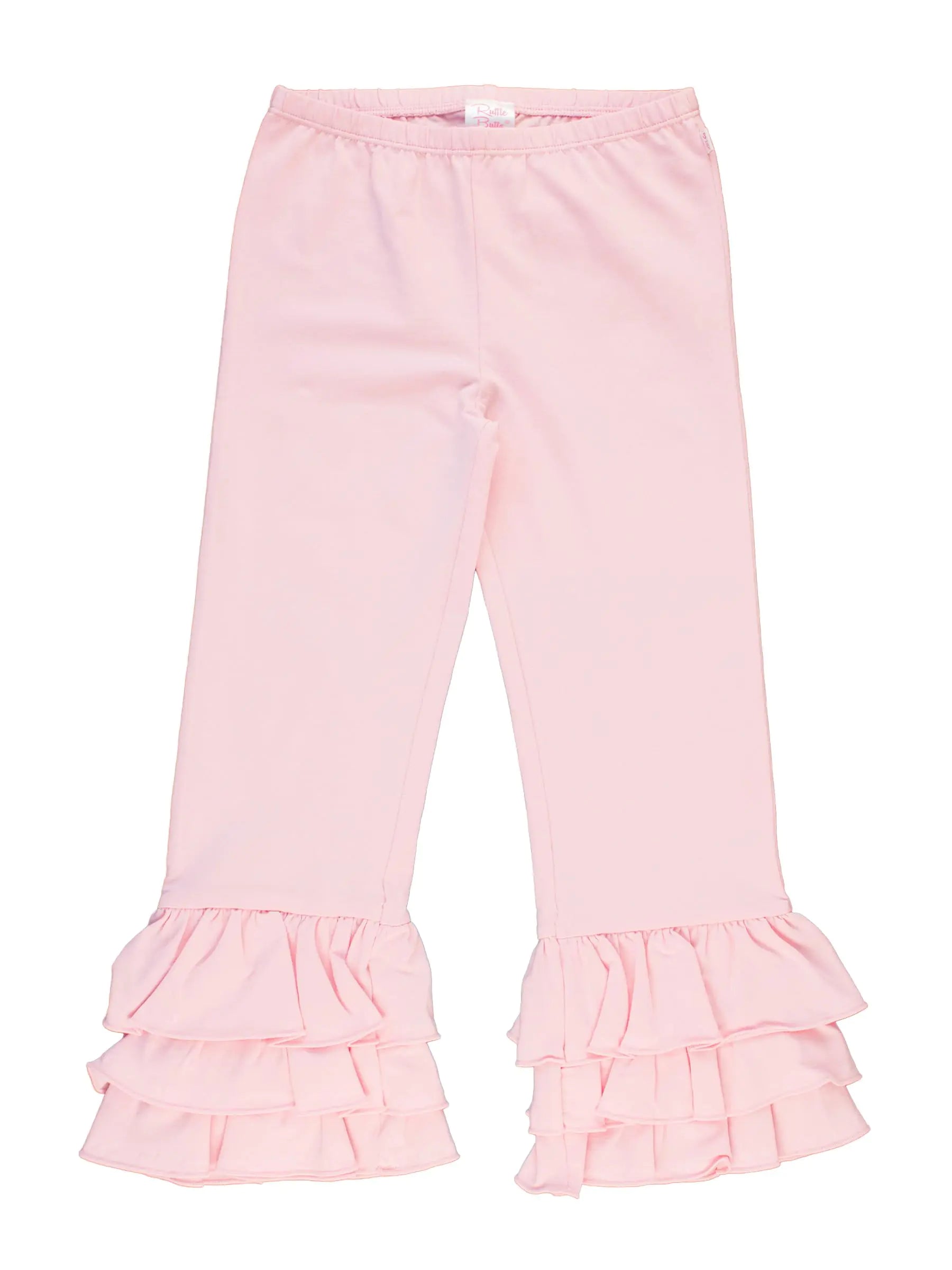 These RuffleButts Kids Pink Ruffle Flare Pants are crafted from super soft, stretchy fabric, making them perfect for everyday wear and active play.
