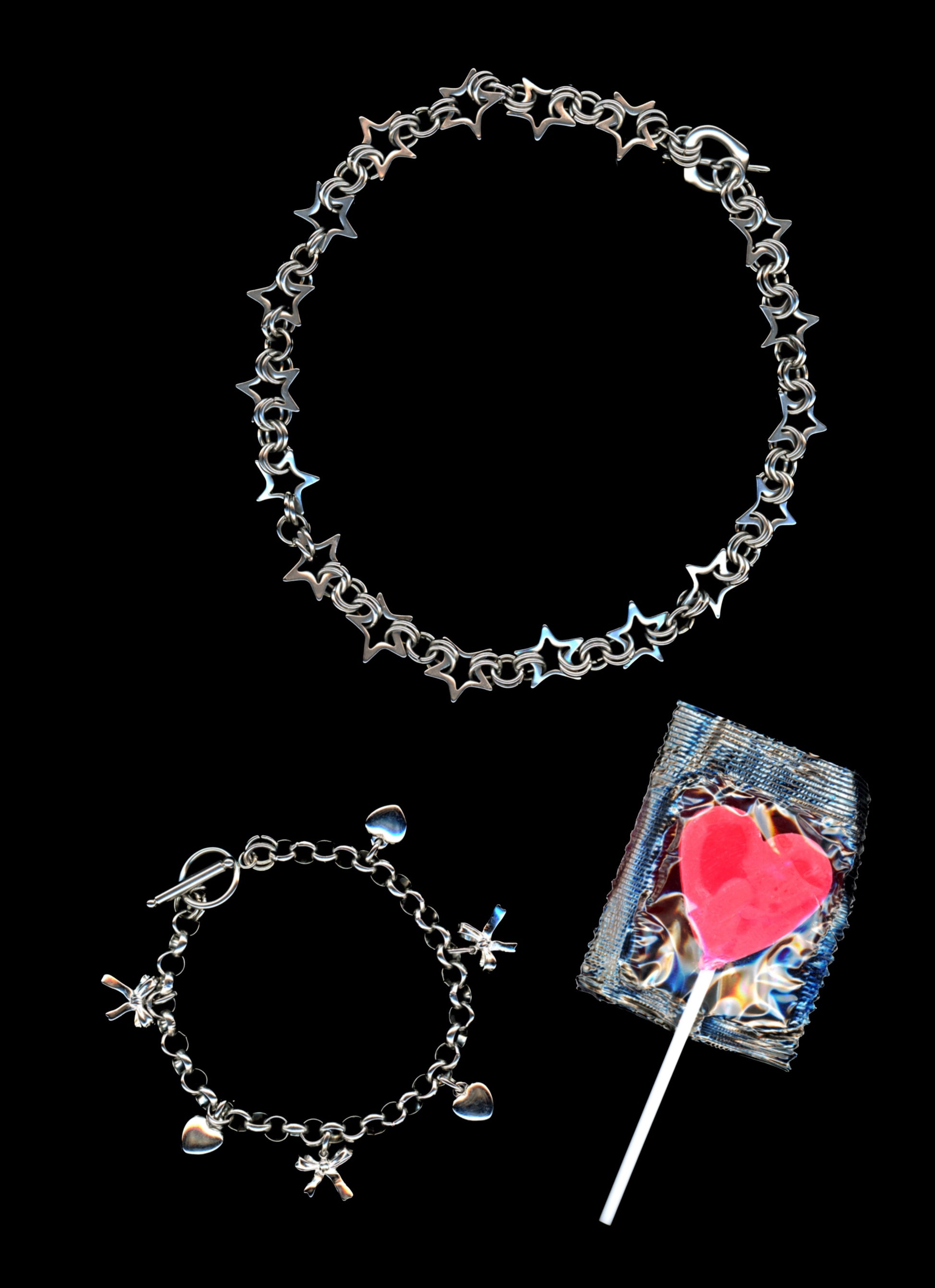 The Eloise Charm Bracelet brings a touch of romance to everyday wear, featuring three-dimensional bow and heart charms that dangle gracefully from a classic rolo chain. Crafted from durable 304 stainless steel, this timeless piece is finished with a secure toggle closure for effortless elegance.