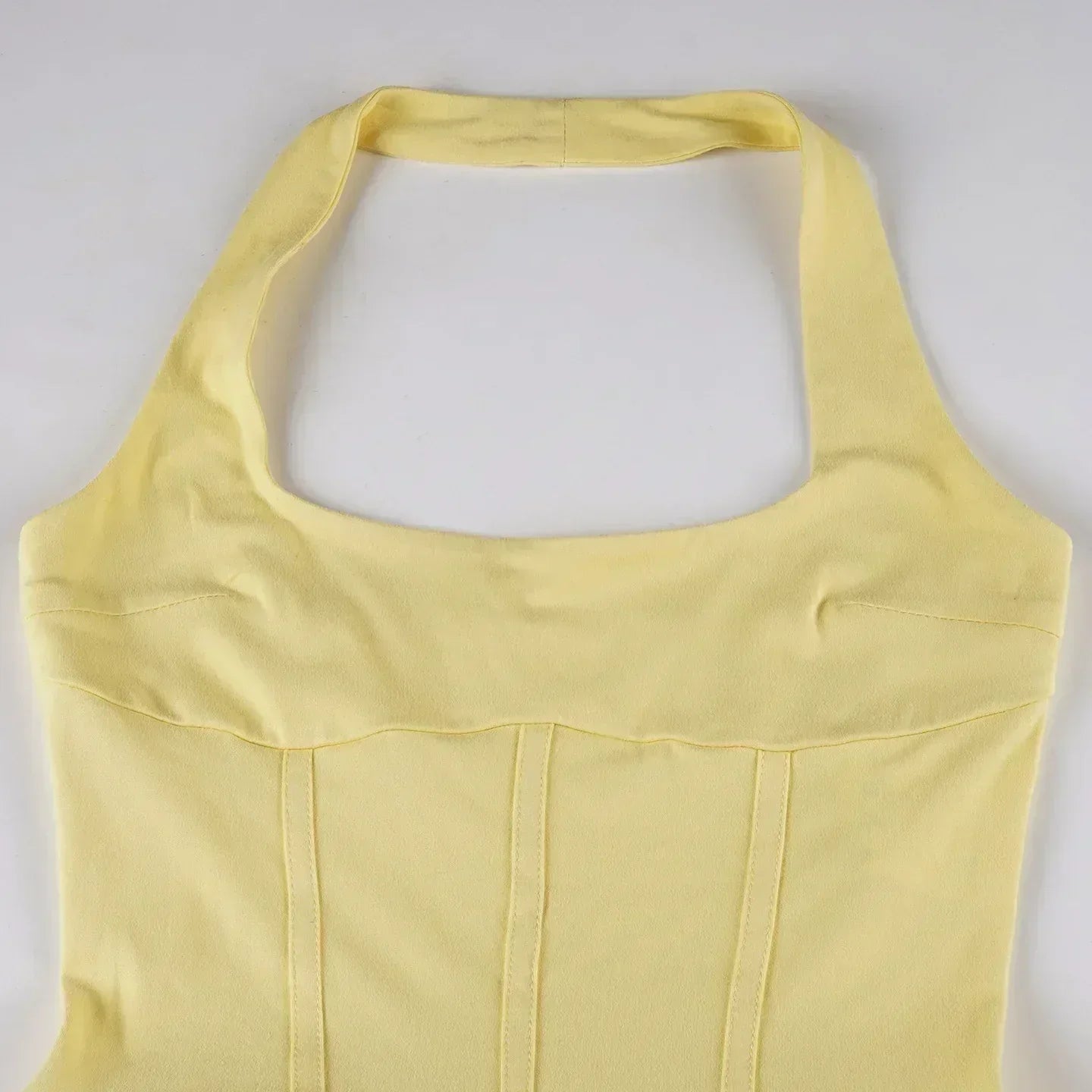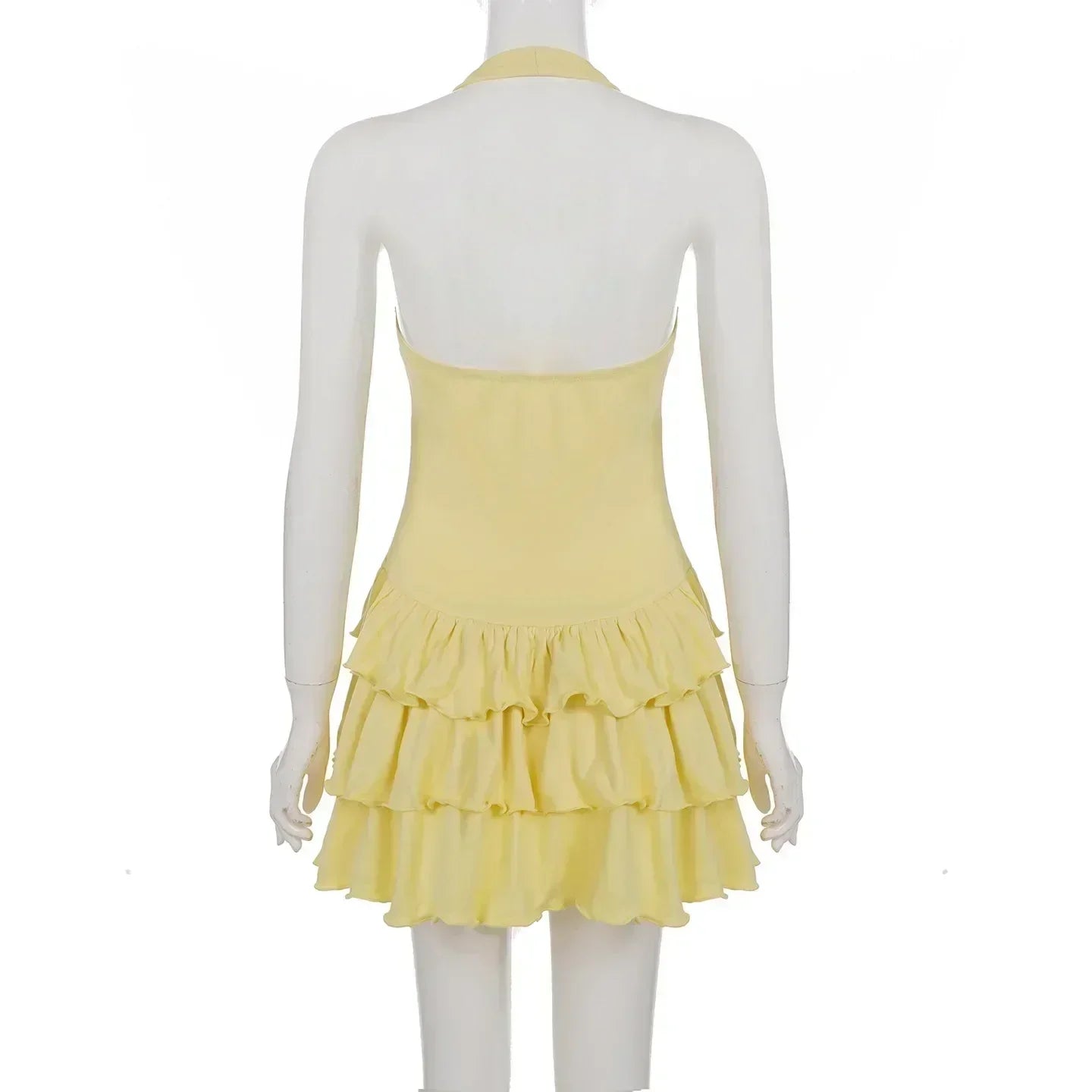 Tornova Vacation Halter Mini Dress For Women Solid High Waist Puffy Dress Ruffled Splice Fashion Sexy Slim Dress 2025 Summer New