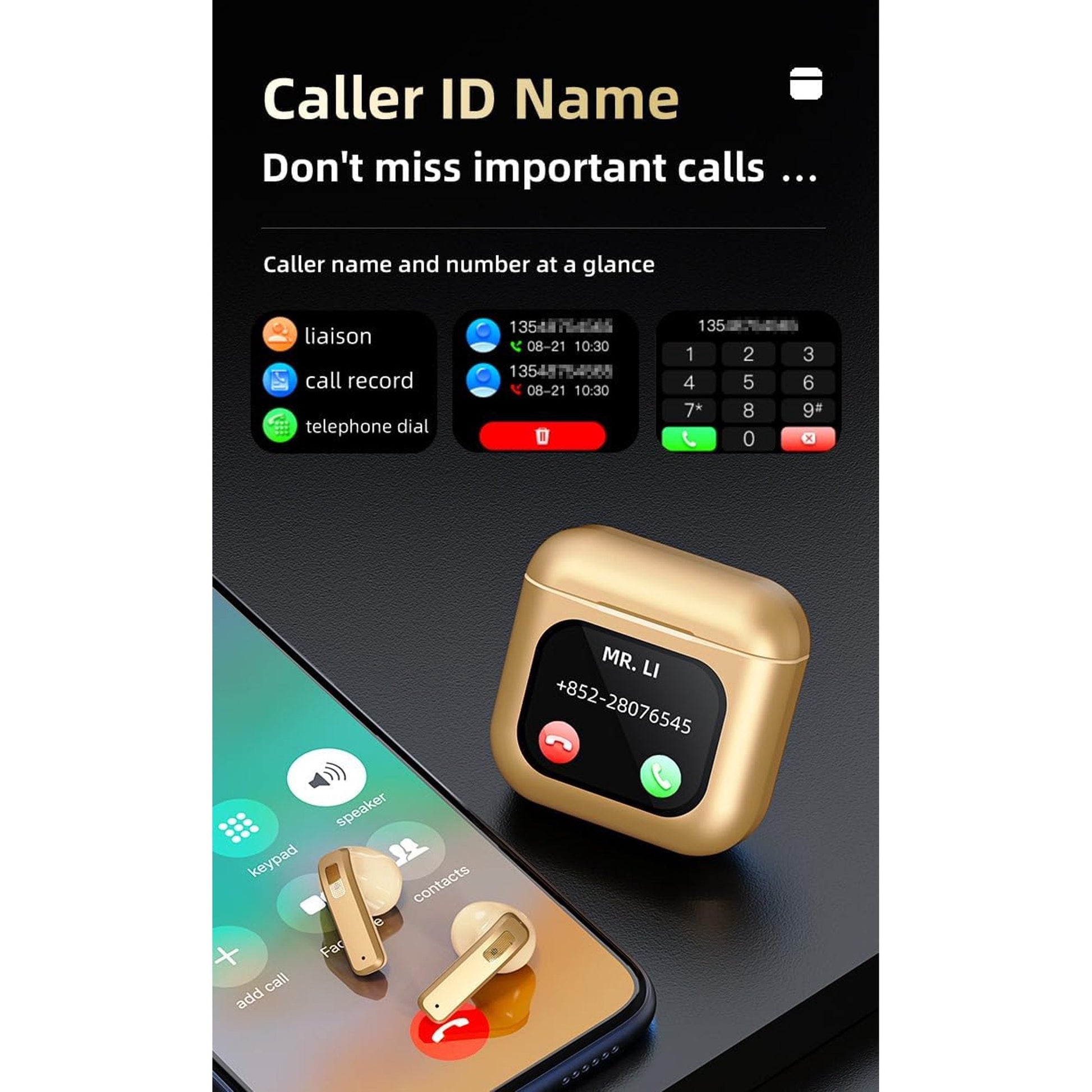 Wireless Earbuds Bluetooth 5.3 Headphones ENC Noise Cancelling in-Ear Earbuds with Wireless Charging Case LED Display Deep Bass Earphones Headset with Built-in Mic (golden)