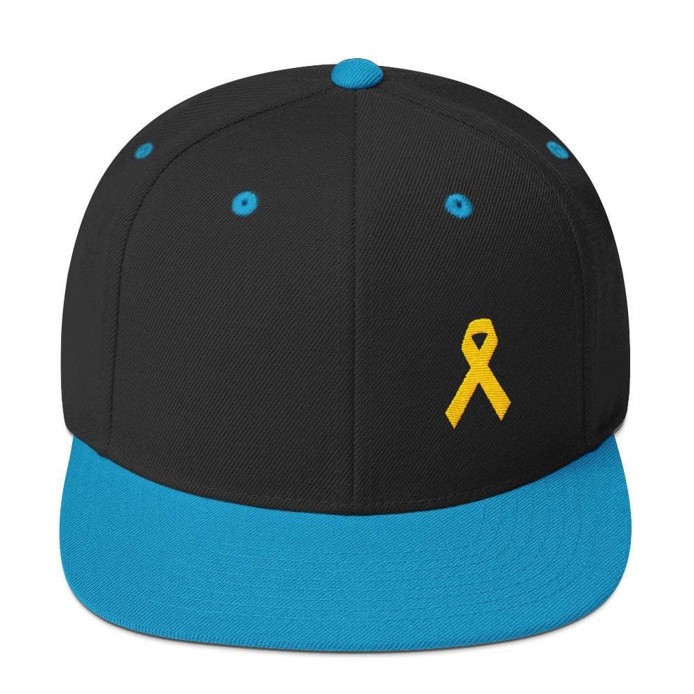 Yellow Awareness Ribbon Flat Brim Snapback Hat for Sarcoma, Suicide Prevention & Military Causes